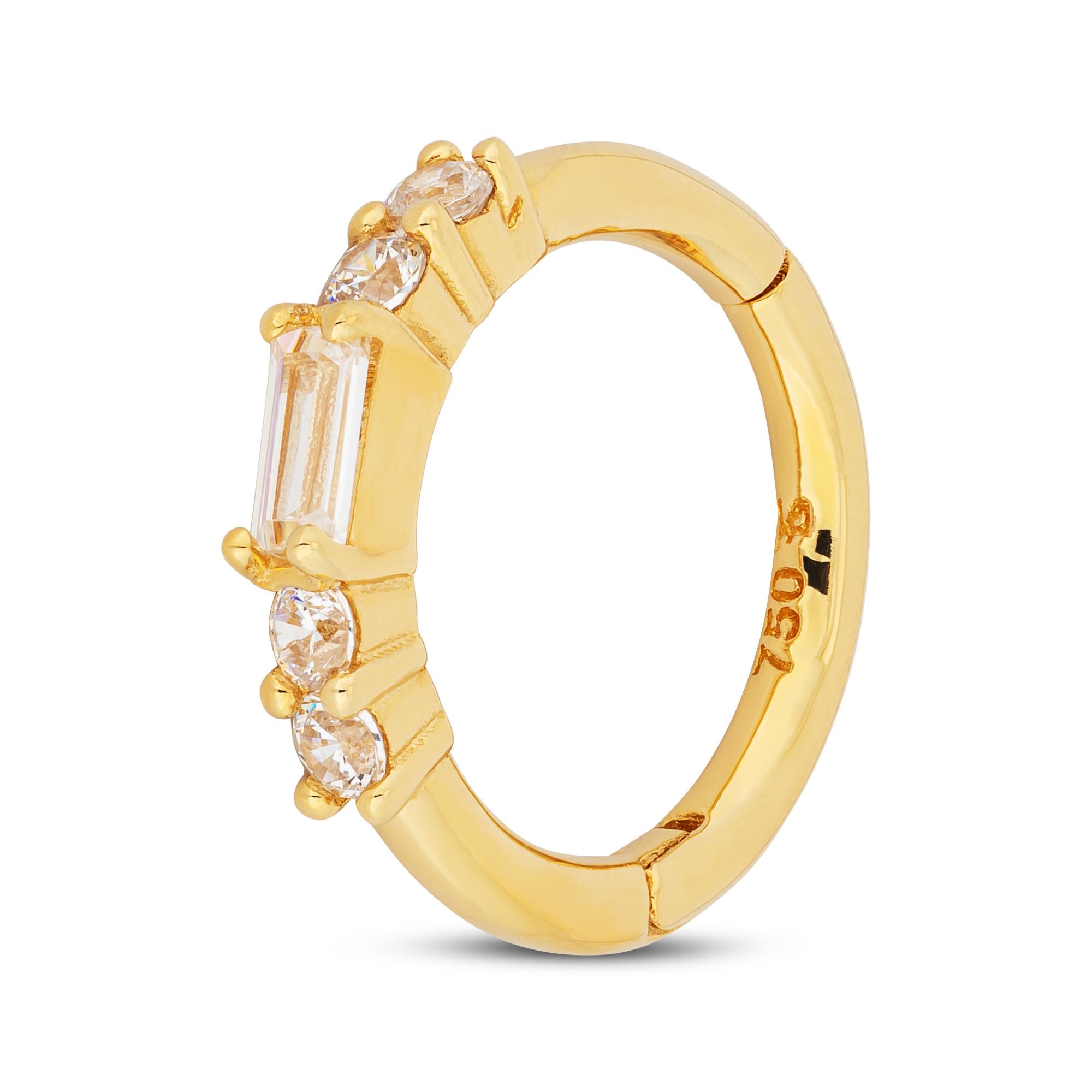 Ce piercing classique de Studio Marquise en or jaune 18 carats avec des pierres de zirconium angulaires à facettes a un fermoir Hoop pratique. Le bijou en filigrane est facile à combiner et polyvalent.