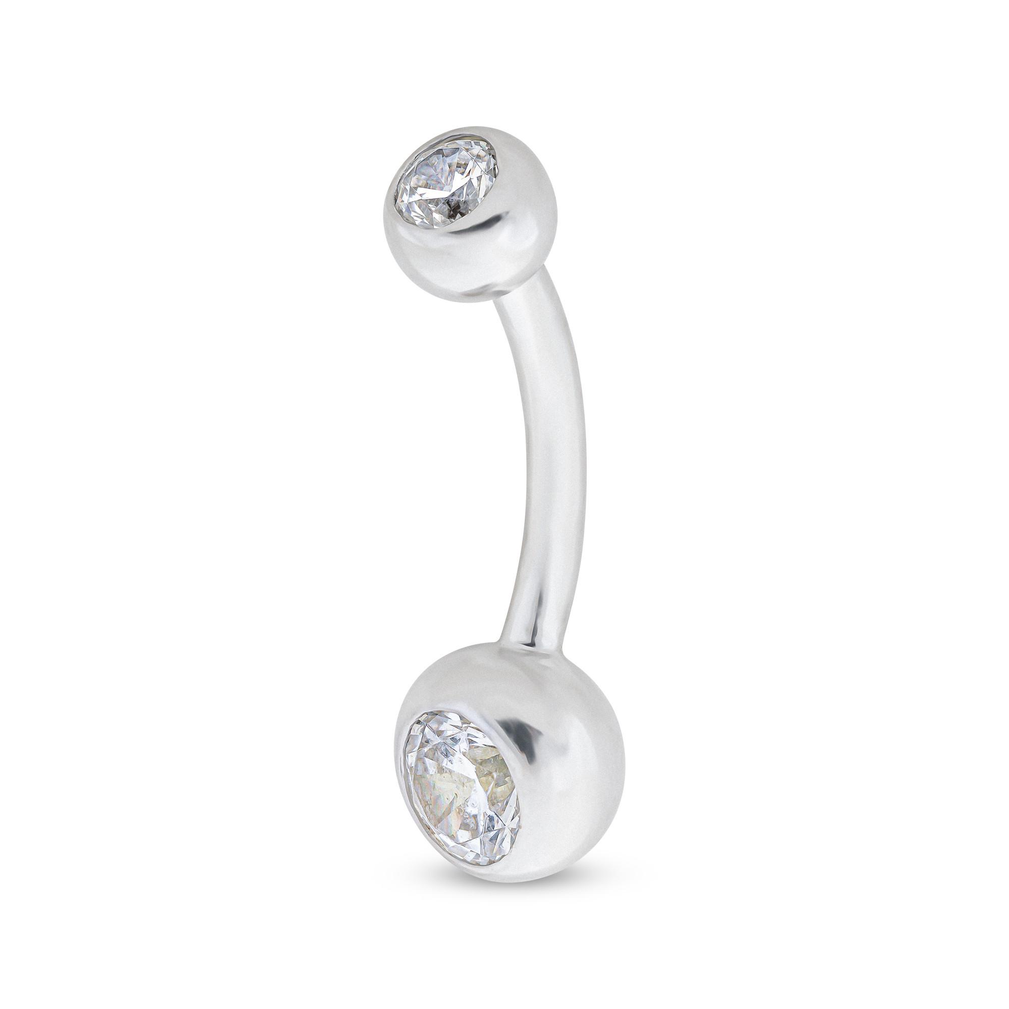 Ce piercing au nombril de Studio Marquise en or 18 carats avec une pierre de zirconium à facettes insérée et une extrémité ronde de l'autre côté est équipé d'un fermoir à vis classique. Le bijou est une pièce raffinée avec un look élégant.