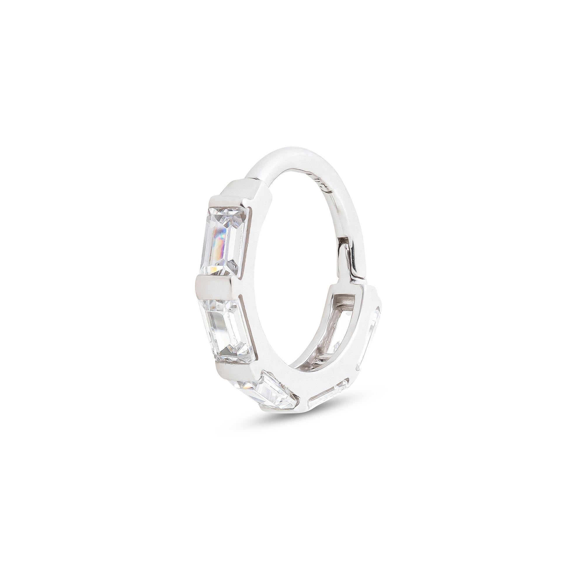 Ce mini cerceau de Studio Marquise en or blanc avec des épingles en pierre de zirconium est un élément vedette du design