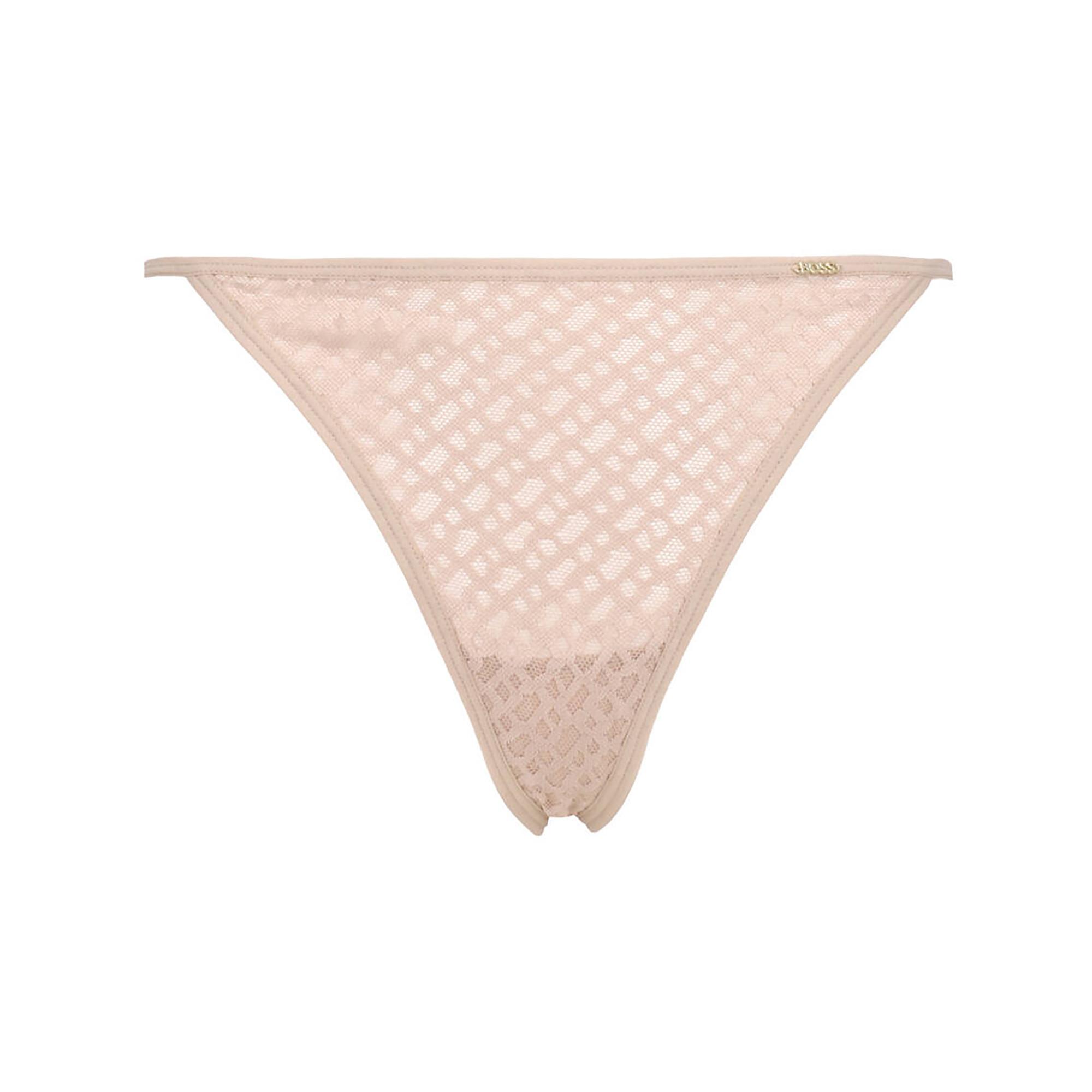 Ce string signature est confectionné en dentelle à monogramme et présente une taille régulière avec une garniture en métal au dos du bandeau.