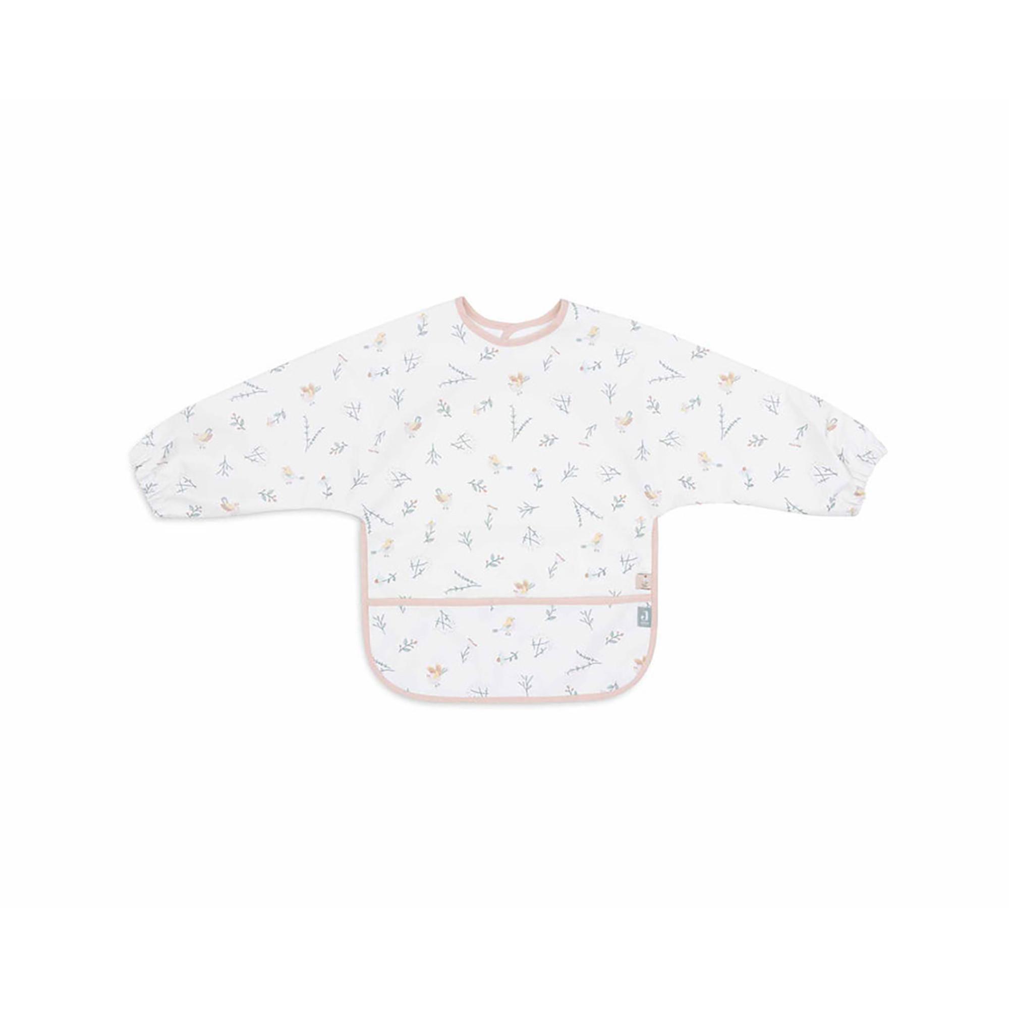 Ce bavoir à manches protège particulièrement bien les vêtements de votre bébé. Le bord inférieur récupère les restes de nourriture, gardant tout propre. Avec le thème mignon Lovely Birds, des branches, des oiseaux et un emblème de fleur, c’est encore plus amusant.