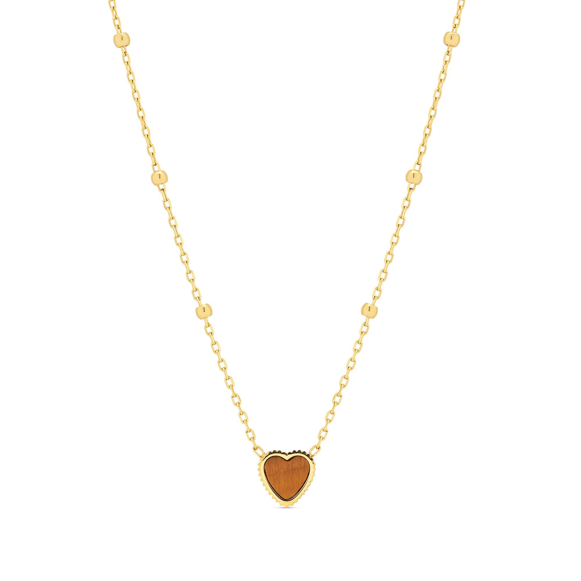 Ce collier de Zag Bijoux en acier inoxydable plaqué or a un pendentif en forme de cœur serti d'ambre. Les bijoux en filigrane sont réglables en longueur et peuvent être fermés par un fermoir mousqueton.