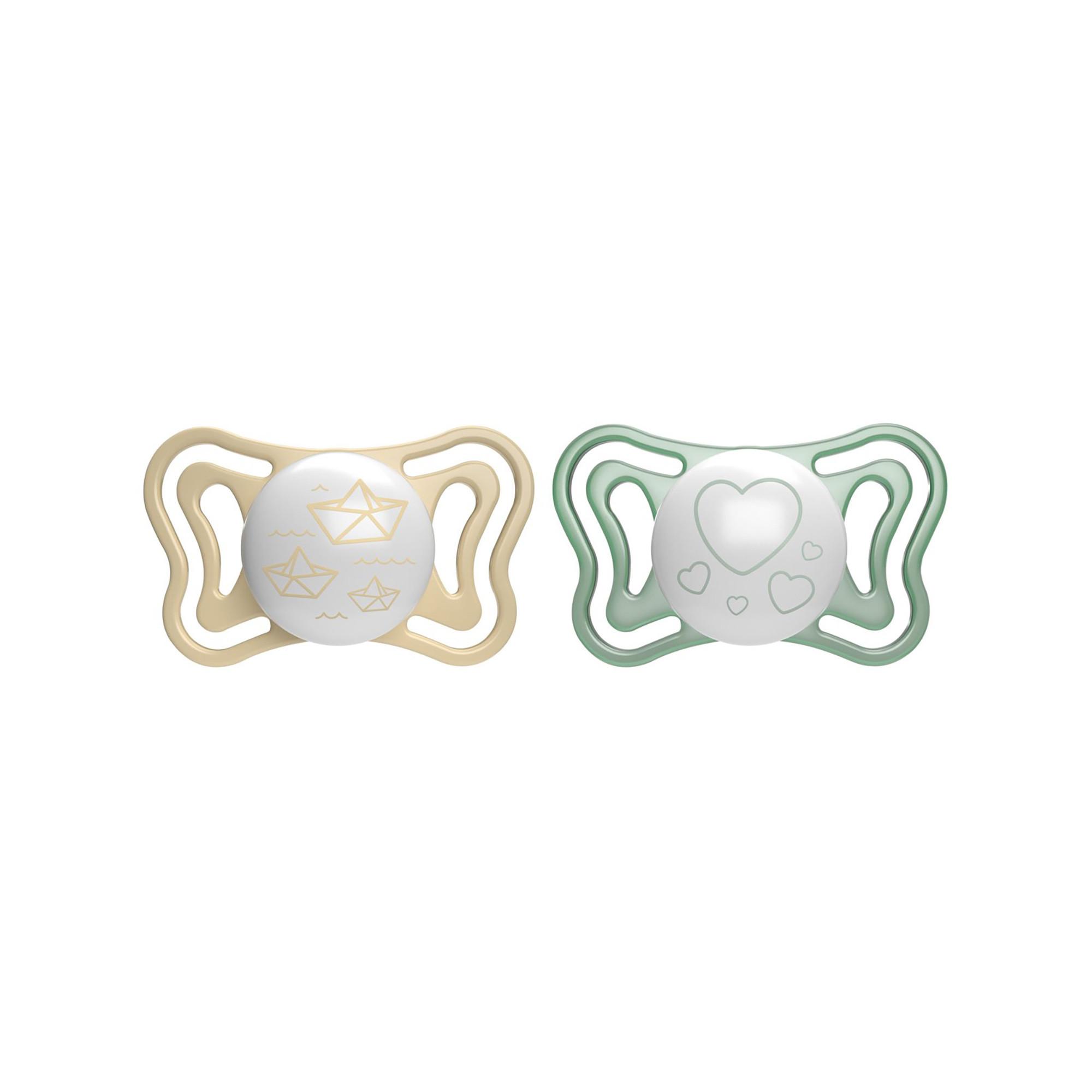 Extra léger et aéré avec une forme ergonomique. 2 pièces 100 % silicone Seulement l'essentiel sur le visage de bébé avec de grandes ouvertures de ventilation fonctionnelles. Laisse la bonne place pour le menton et le nez. Facile à saisir grâce à la forme de bouton.