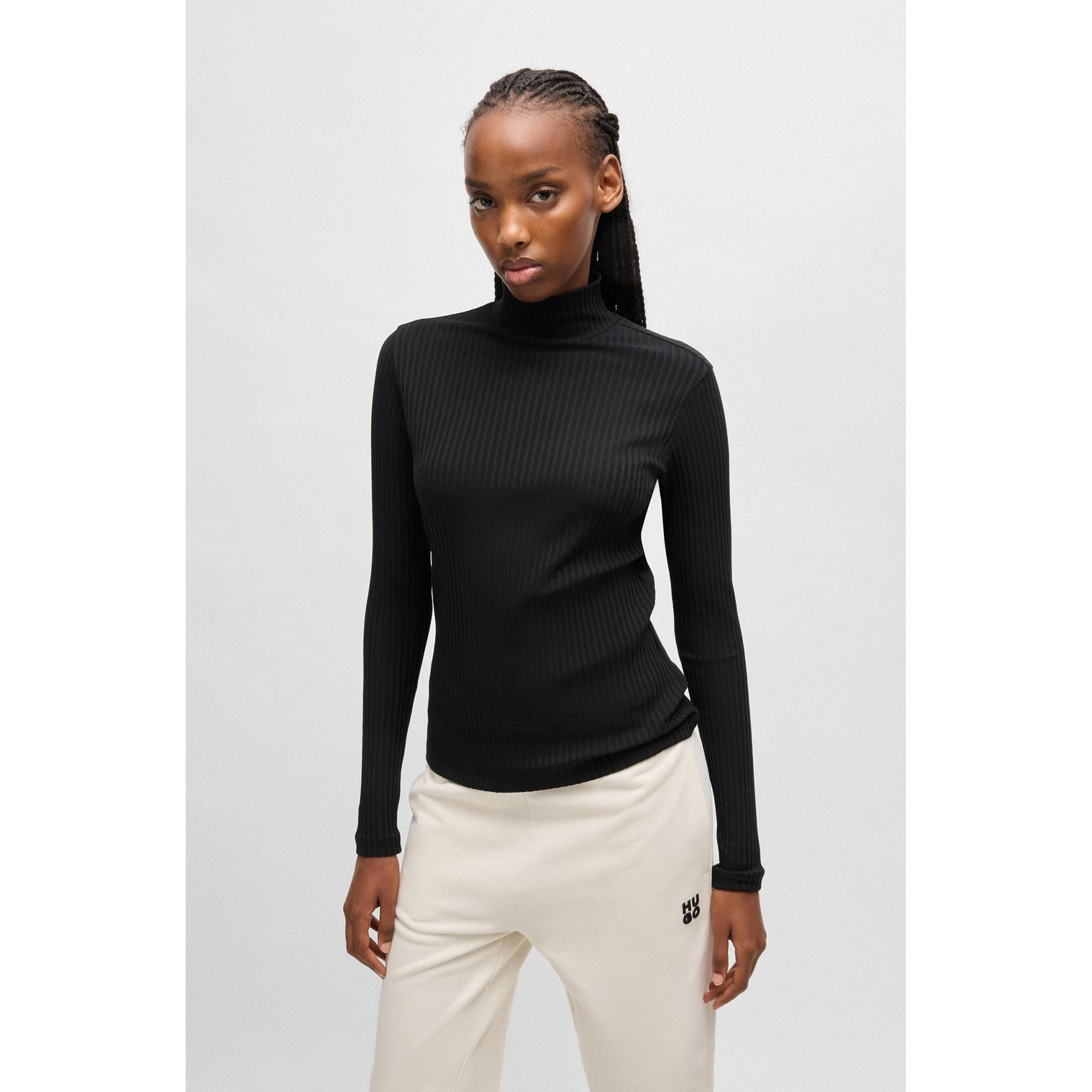 HUGO, T-shirt côtelé à col roulé et manches longues