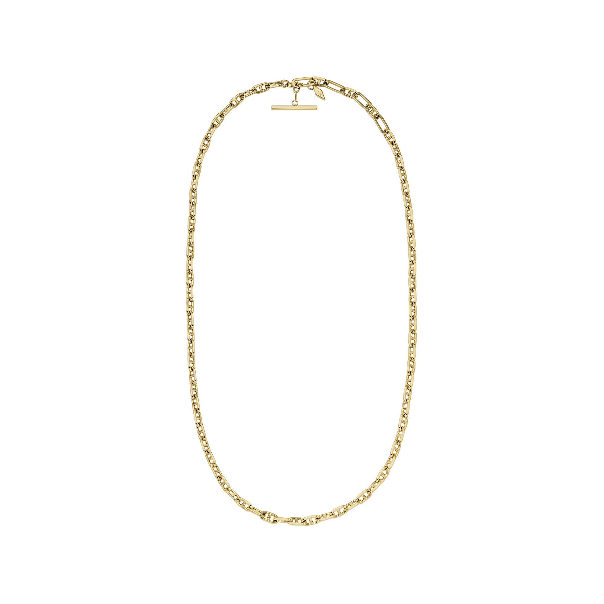 Ce collier Heritage D-Link Anchor Chain de Fossil se distingue par son design audacieux en laiton de couleur dorée. Avec son fermoir à anneau, la chaîne peut être portée seule comme pièce maîtresse ou superposée à d'autres colliers.