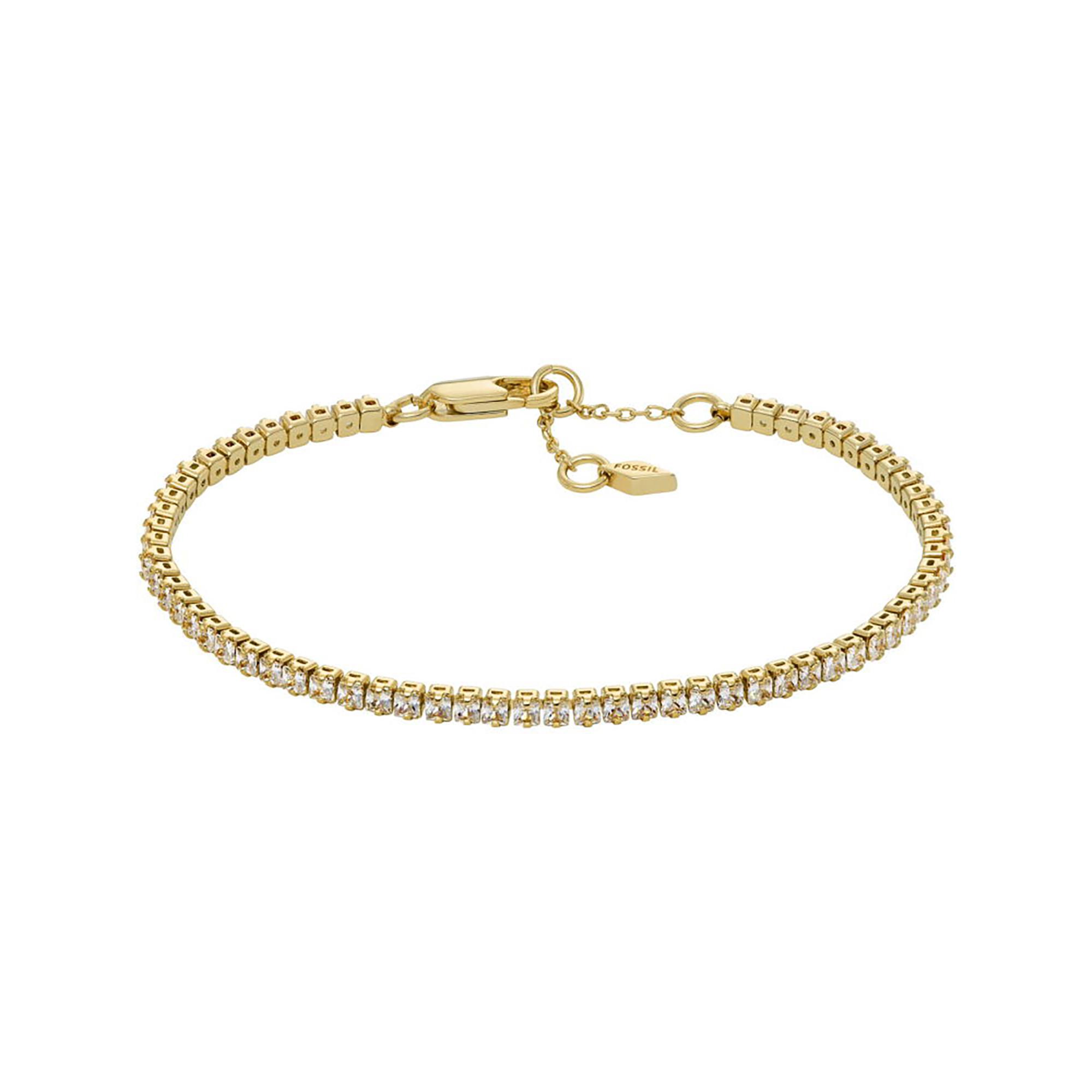 Ce bracelet tennis est fabriqué en laiton doré et dispose d’une fermeture à mousqueton. Un accessoire élégant pour sublimer votre poignet.