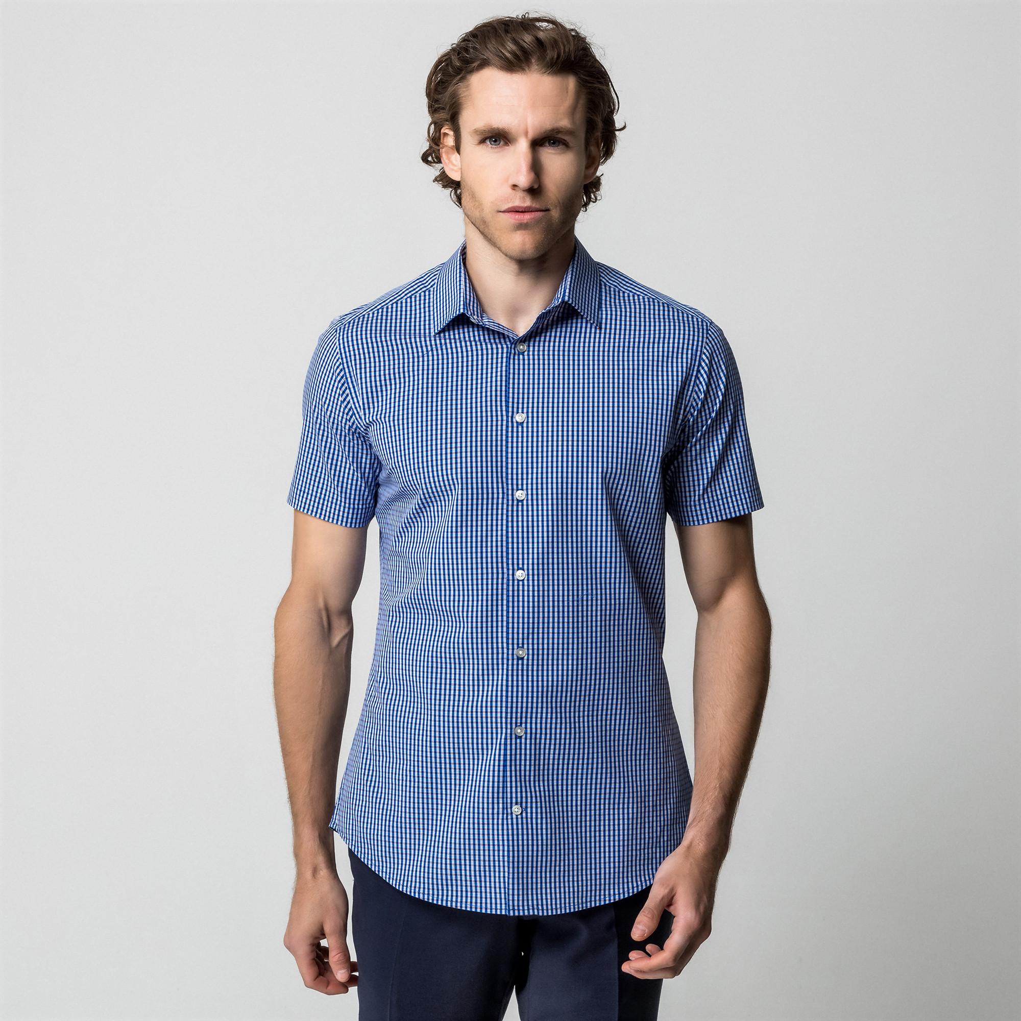 Cette chemise pour homme présente une silhouette légèrement plus étroite, un élégant col requin et un ourlet arrondi, ce qui en fait une chemise polyvalente au quotidien avec un grand confort de port. La chemise est fabriquée en pur coton.