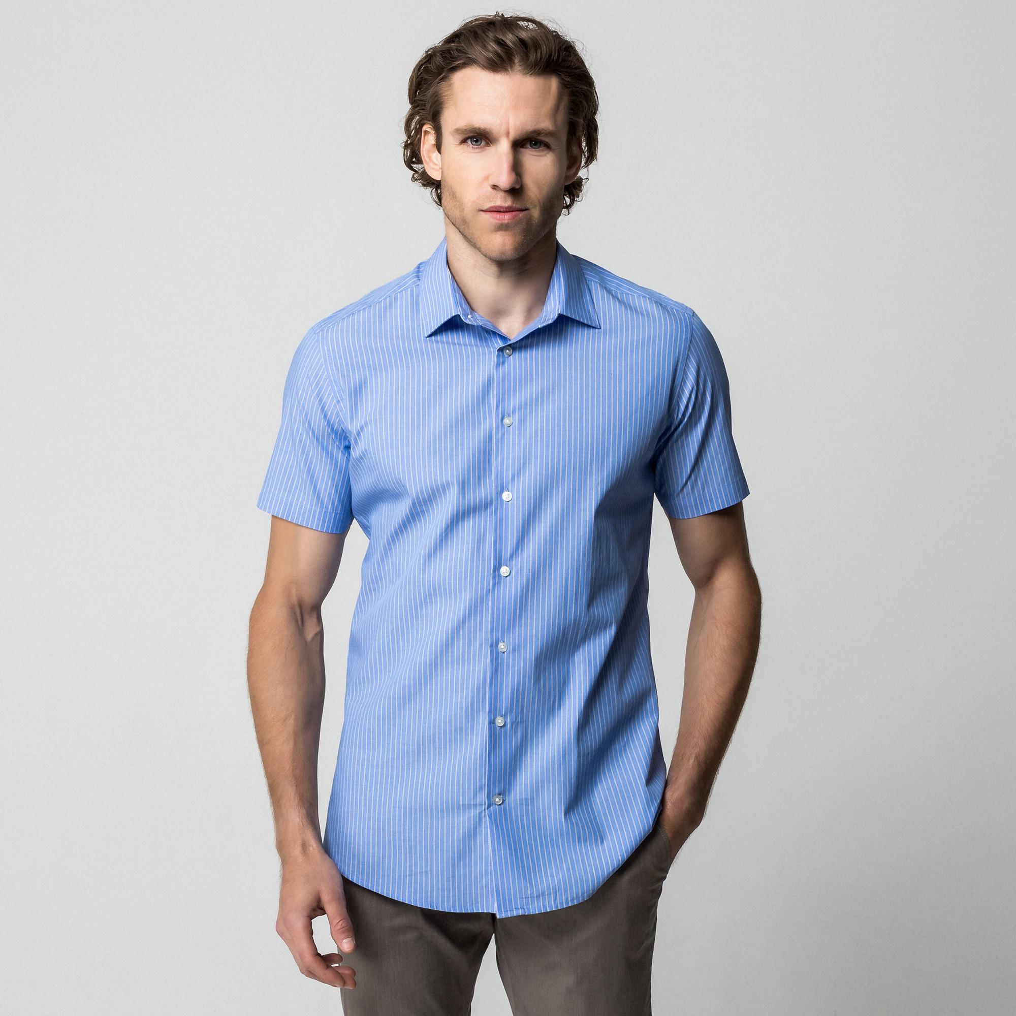 Cette chemise pour homme avec une silhouette légèrement plus étroite, un élégant col requin et un ourlet arrondi est une chemise de tous les jours polyvalente avec un confort de port élevé. La chemise est fabriquée en pur coton.