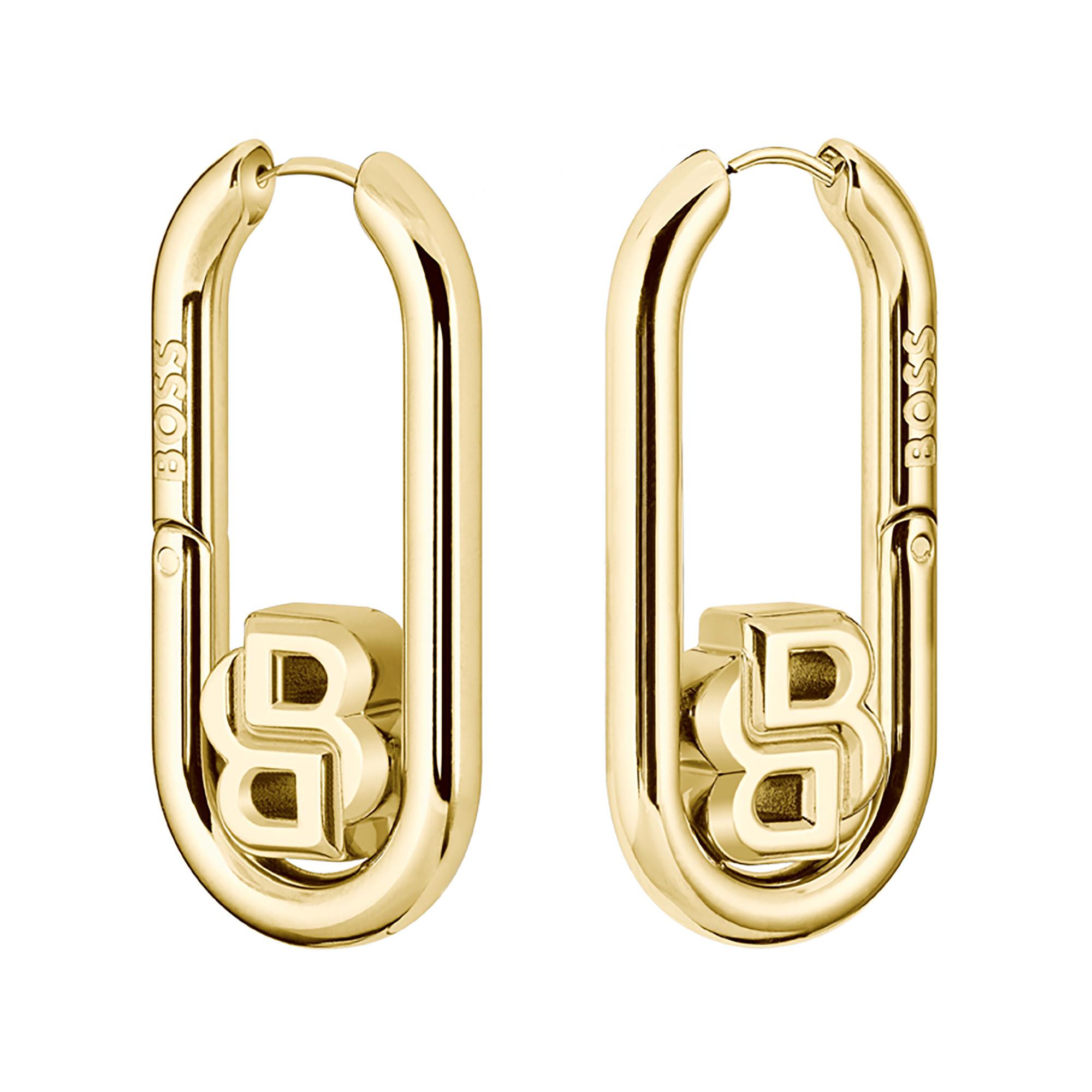 Ces créoles de la collection DOUBLE B SWING de Boss sont un accessoire élégant pour les femmes. Fabriquées en acier inoxydable de haute qualité avec une finition polie et un plaquage ionique IP, elles offrent un aspect raffiné. Le fermoir à mousqueton assure un maintien sécurisé.