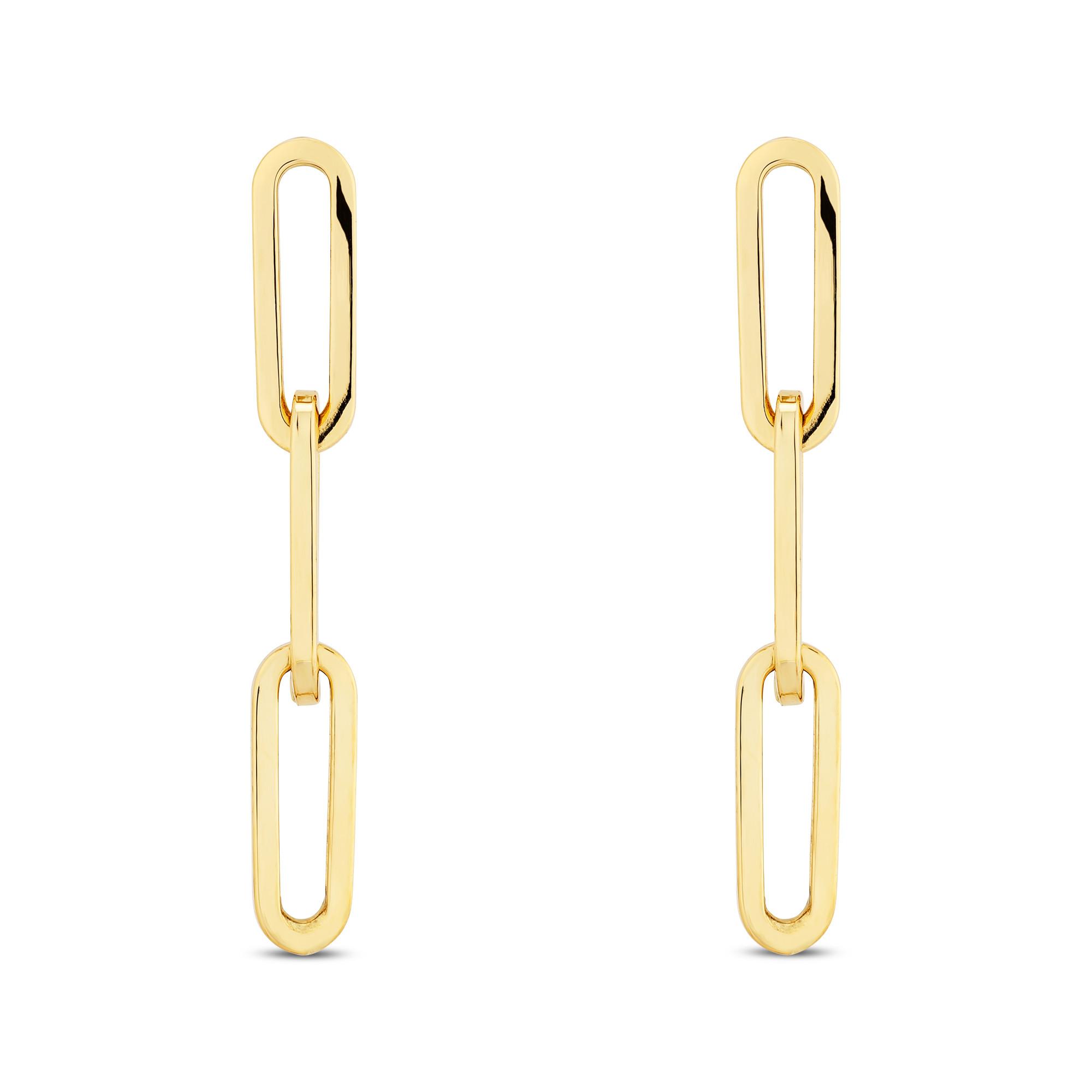 Cette paire de boucles d'oreilles de L'Atelier Gold 18 Karat by Manor est en or jaune 18 carats. Les boucles d'oreilles sont constituées de maillons de chaîne minces