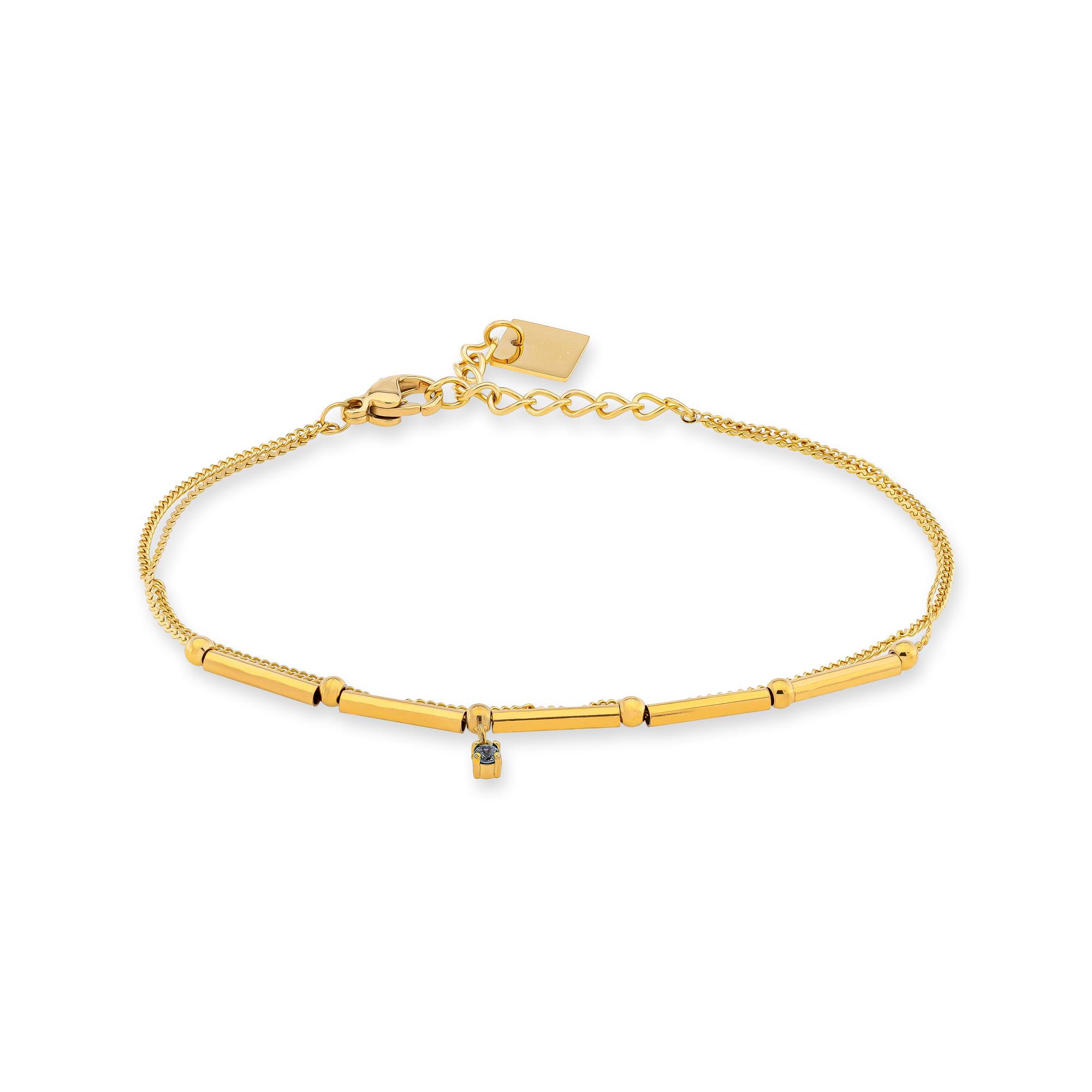 Cette gourmette de Zag Bijoux en acier inoxydable avec une finition dorée et délicate et une pierre décorative à facettes est un bijou amusant avec un caractère féminin. La chaîne est réglable en largeur et se ferme avec style à l’aide d’un mousqueton.