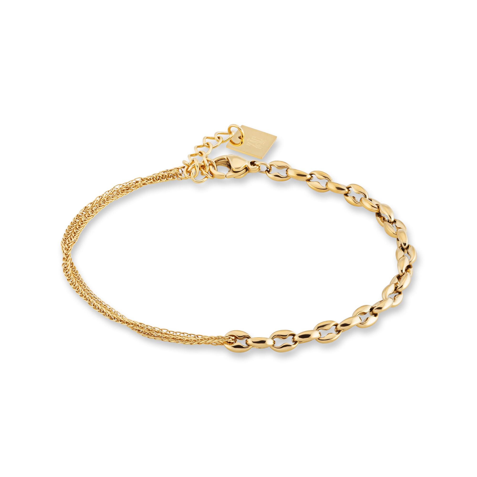 Cette gourmette de Zag Bijoux en acier inoxydable doré est un bijou de caractère avec un design de chaîne remarquable. La chaîne est réglable en largeur et se ferme avec style à l'aide d'un mousqueton.