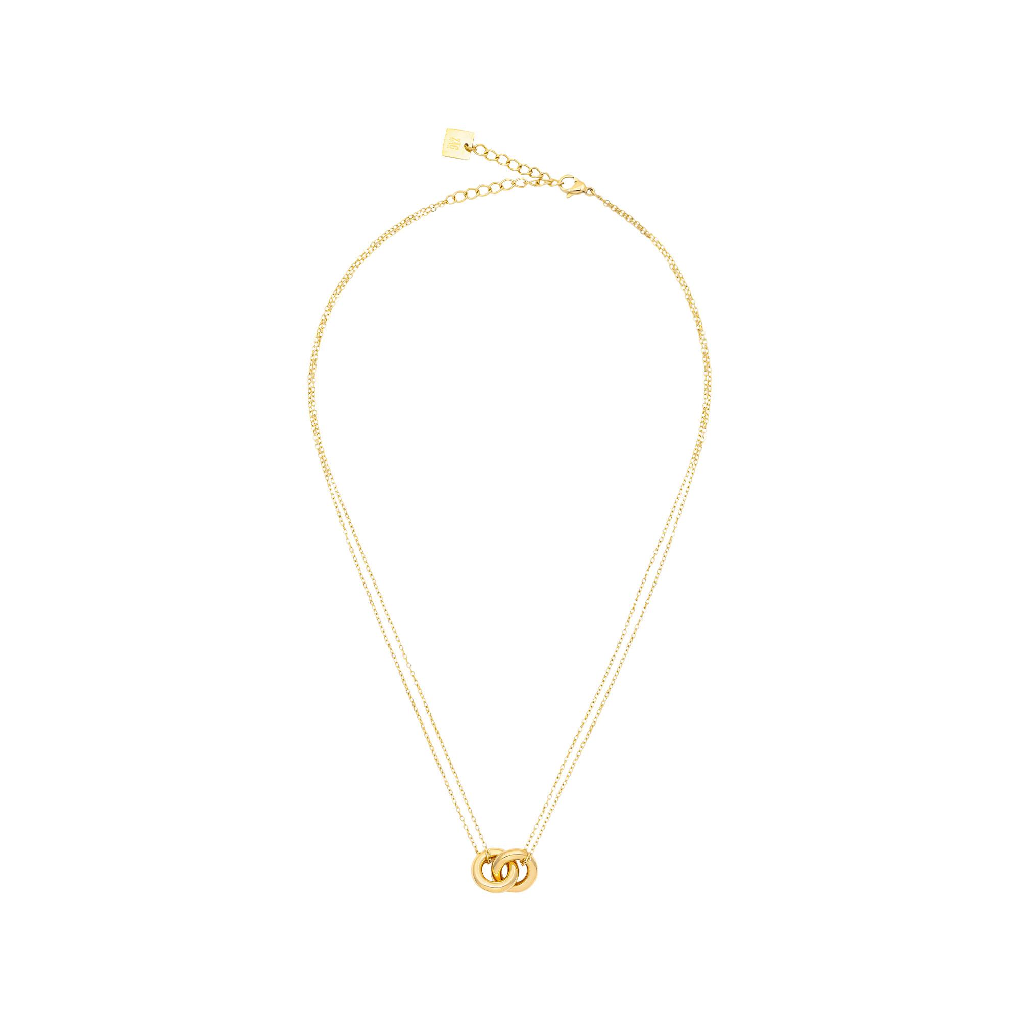 Ce collier de Zag Bijoux en acier inoxydable avec une finition or est une chaîne délicate avec un pendentif composé de deux anneaux entrelacés. Le bijou ludique a un caractère discret et se ferme élégamment par un mousqueton.