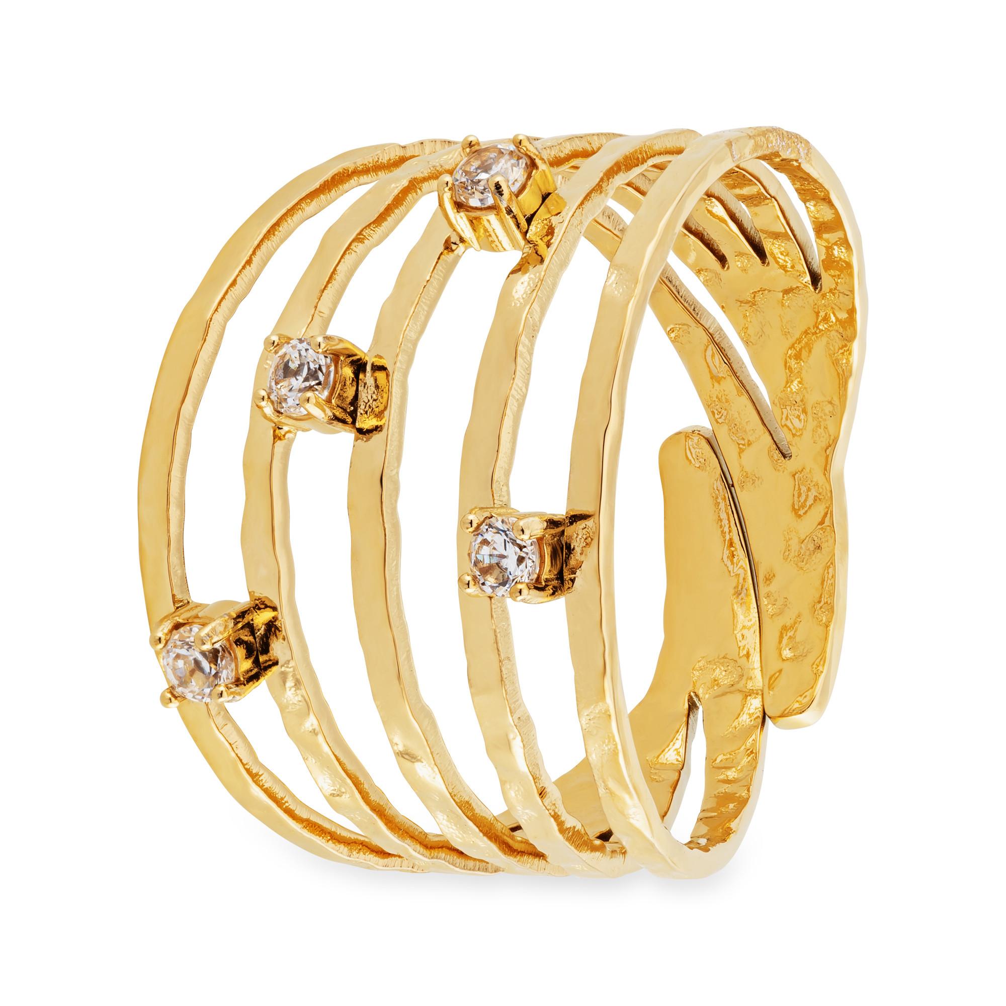Cette bague de Zag Bijoux est conçue avec des anneaux fins irréguliers sertis de zirconium, une déclaration ludique avec un caractère féminin.