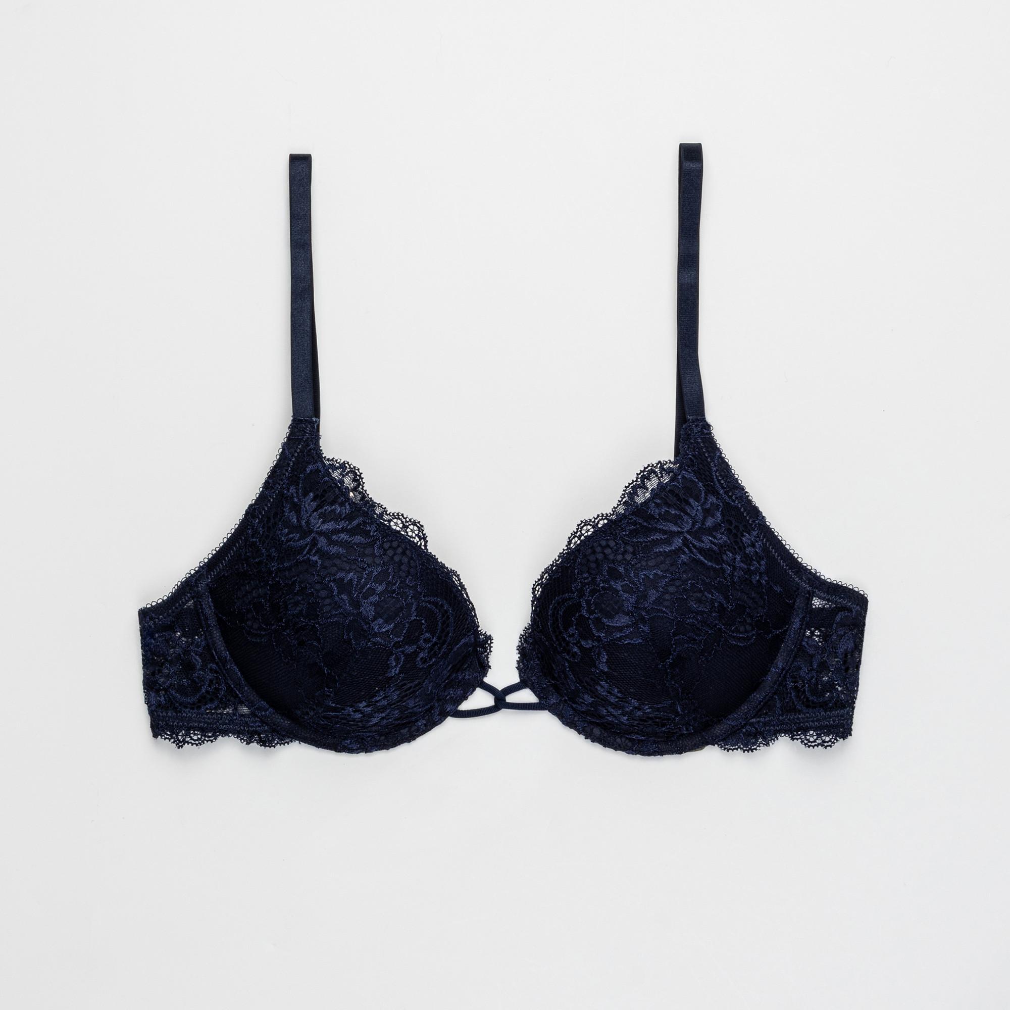 Ce soutien-gorge push-up présente de délicats détails en dentelle, offrant à la fois élégance et maintien. Le design comprend des bretelles réglables et une fermeture à crochets pour un ajustement confortable et personnalisable.