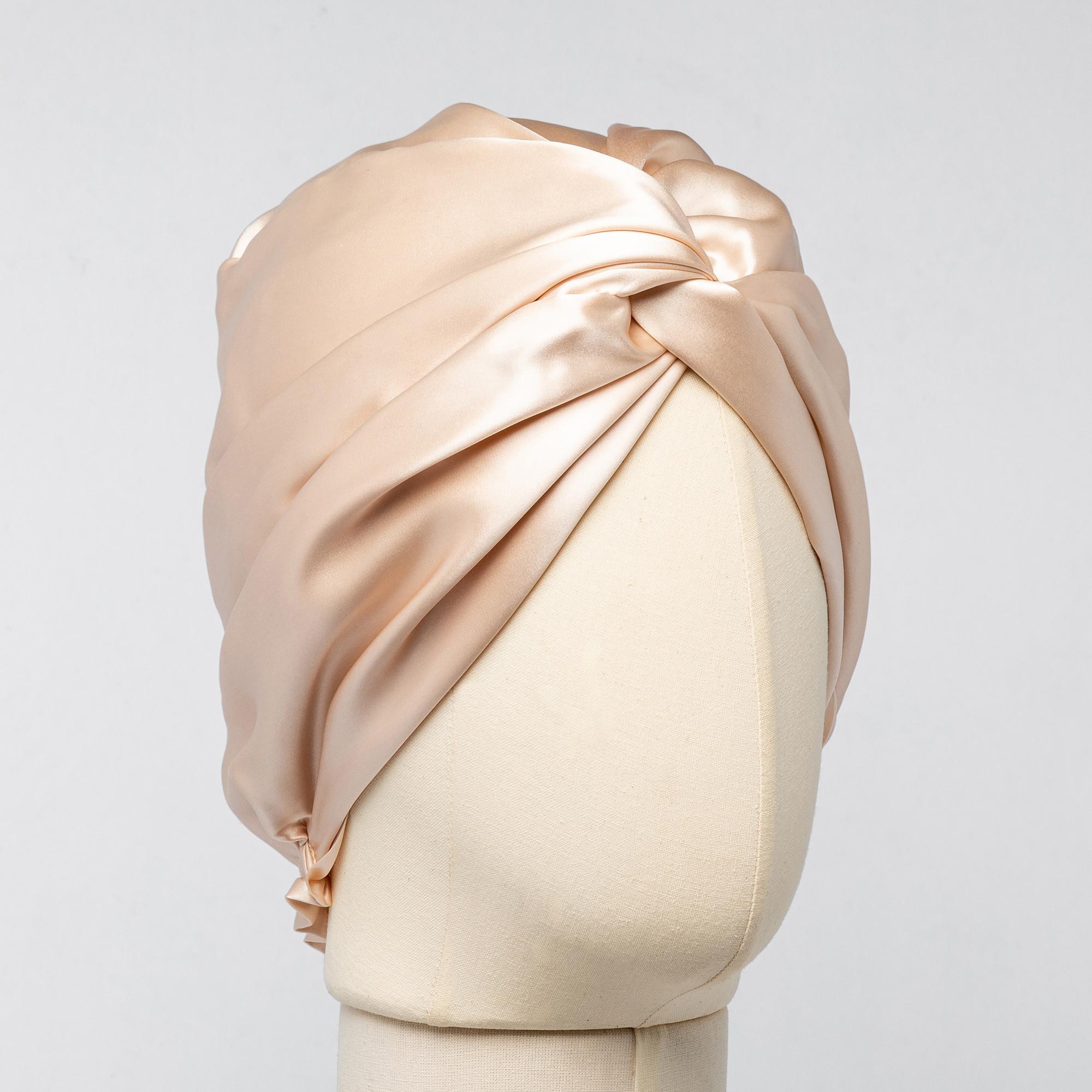 Le turban en soie de Manor protège la structure des cheveux de manière durable et sans créer de frisottis par frottement. Les fibres de soie emmagasinent l'humidité et n'absorbent pas les produits de soin, contrairement au coton. Le capuchon en soie glamour convient à tous les types de cheveux