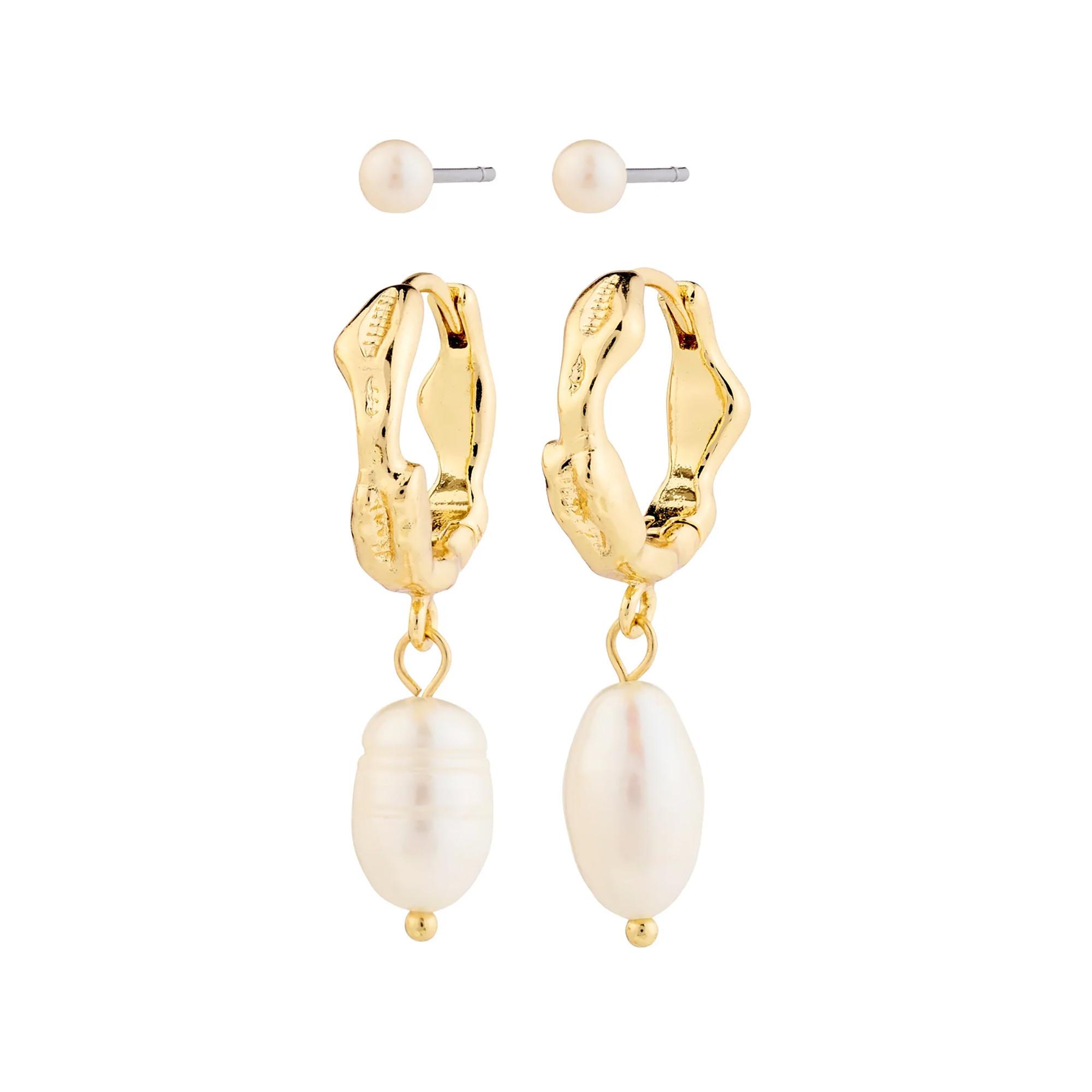 Avec les boucles d’oreilles JONNE de Pilgrim, vous obtenez deux ensembles : des anneaux plaqués or avec de véritables perles d’eau douce et des clous d’oreilles en perles classiques. Parfaites