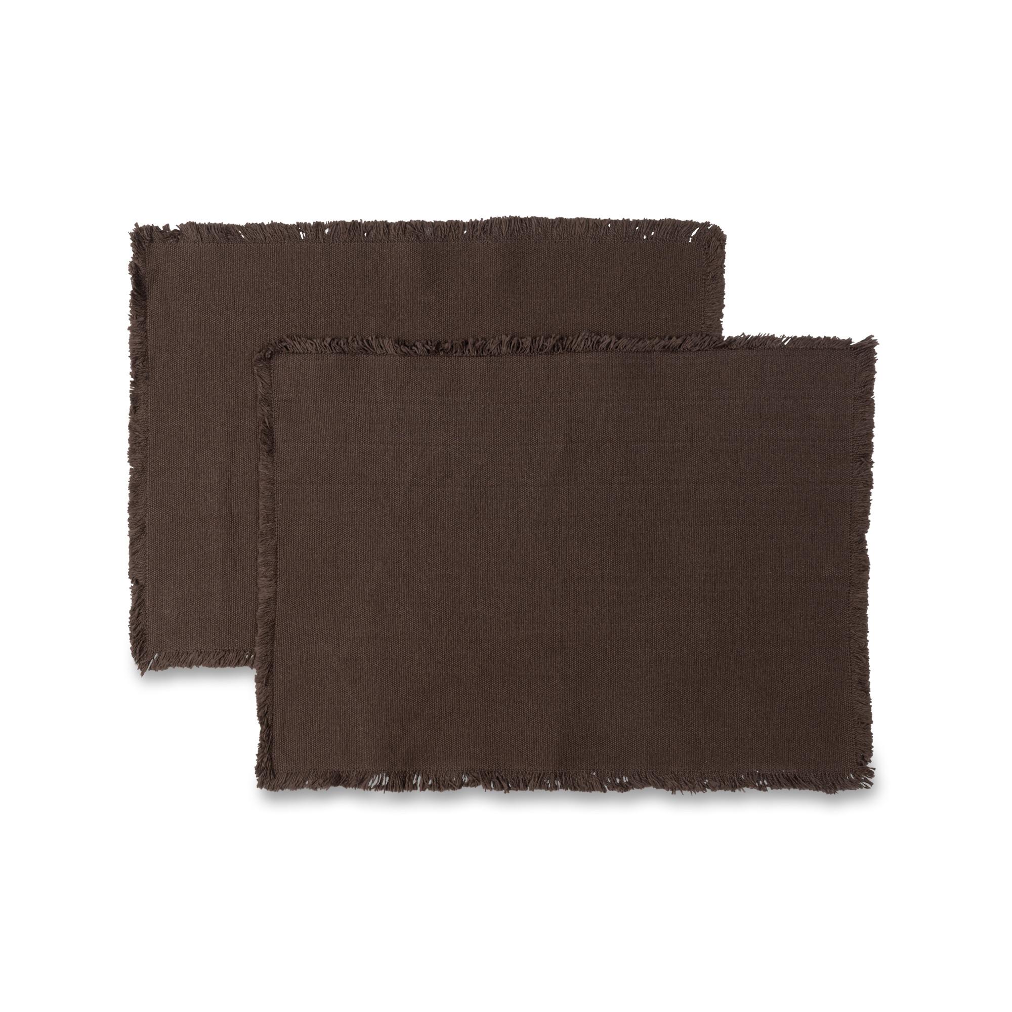 Ce set de table en lot de deux « Cottage » de Manor confère une touche rustique avec son tissu grossier et ses bords effilochés. Le design monochrome s’adapte parfaitement avec les décorations de table naturelles et apporte de la texture à la table à manger.