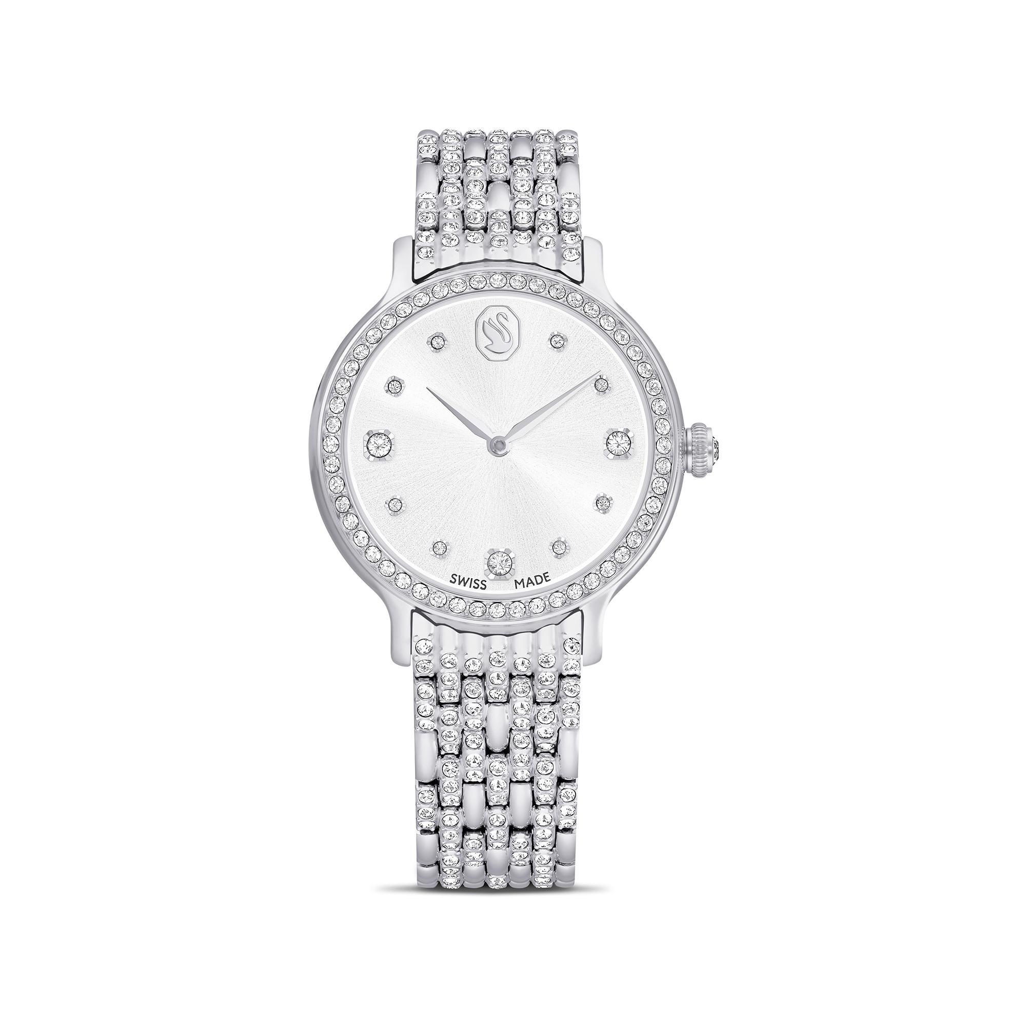 Cette montre Imber de Swarovski est Swiss Made, avec un bracelet en métal en acier inoxydable de ton argent. Elle est ornée de cristaux et se distingue par sa construction en acier inoxydable, garantissant une grande durabilité.