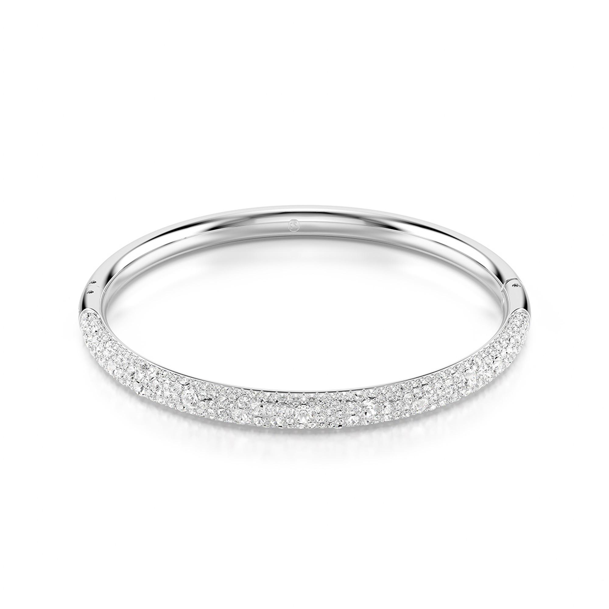Ce bracelet rigide de Swarovski en métal argenté est orné de cristaux clairs dans un pavé neige, offrant un design élégant qui ajoute une touche de luxe à chaque occasion.