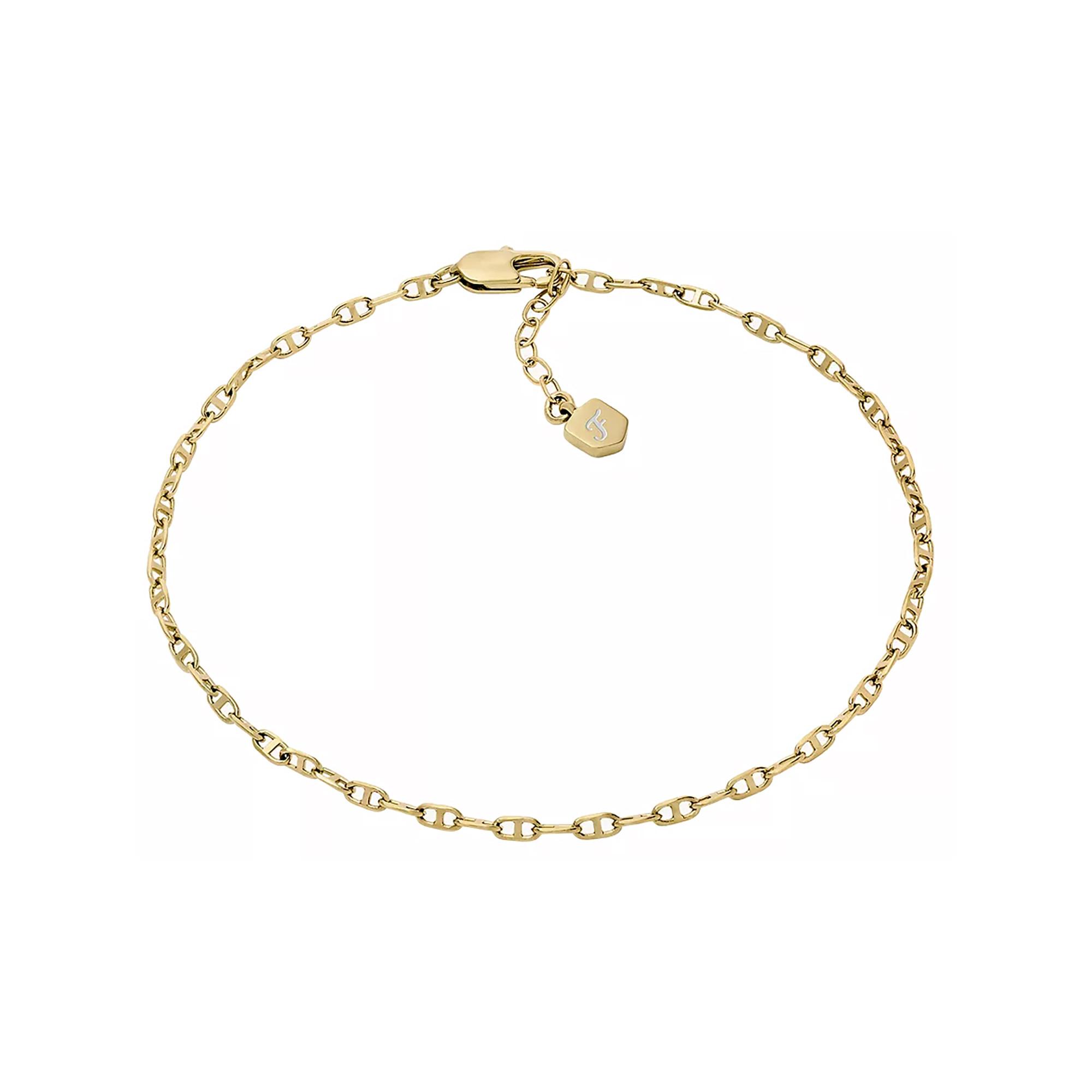 La chaîne de cheville est un incontournable moderne pour tous les jours. Cette chaîne étroite en métal poli avec une finition dorée a les maillons en D typiques de la marque. Porte l’élégante chaîne de cheville avec un fermoir mousqueton sécurisé avec tous tes looks préférés.