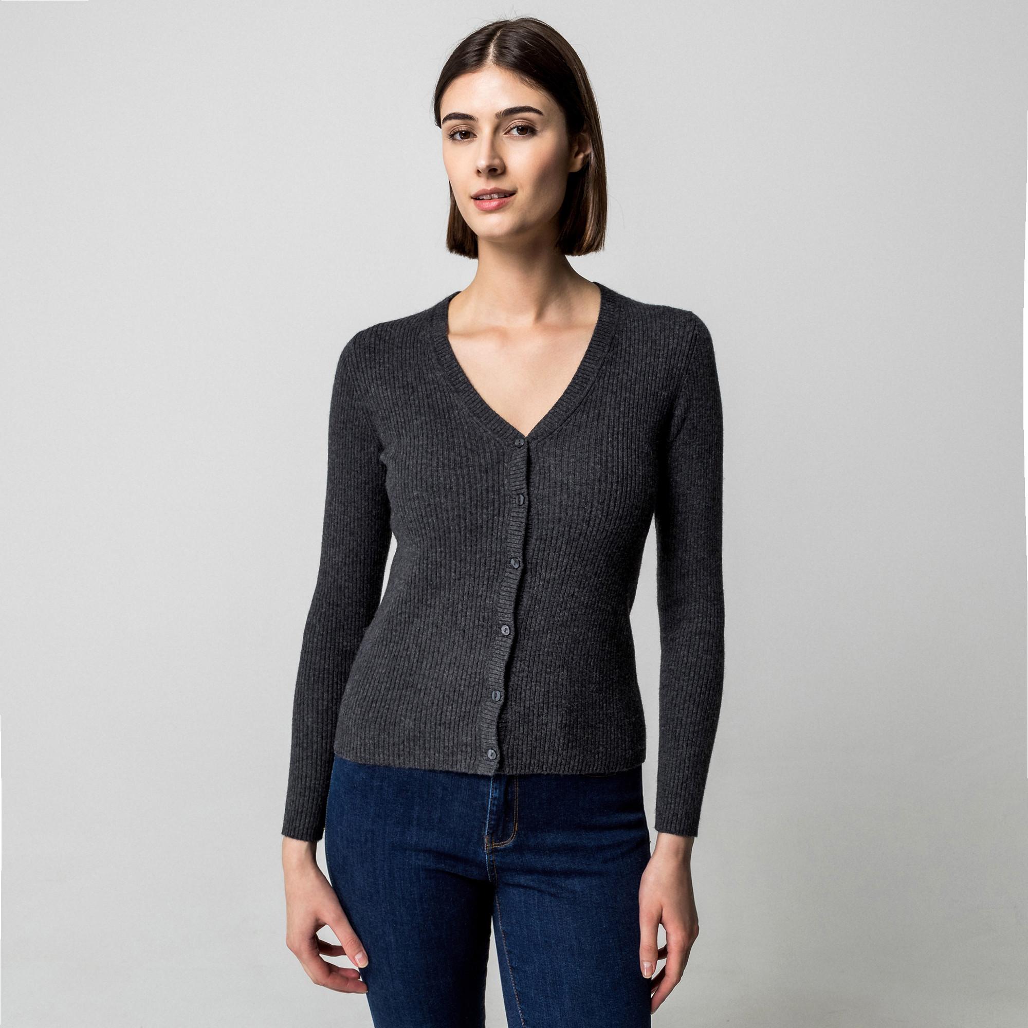 Ce cardigan est fabriqué en pure laine de cachemire. Le cardigan en maille côtelée classique avec une encolure en V et des manches longues a une coupe droite et ajustée – un basique polyvalent de tous les jours avec une silhouette féminine.