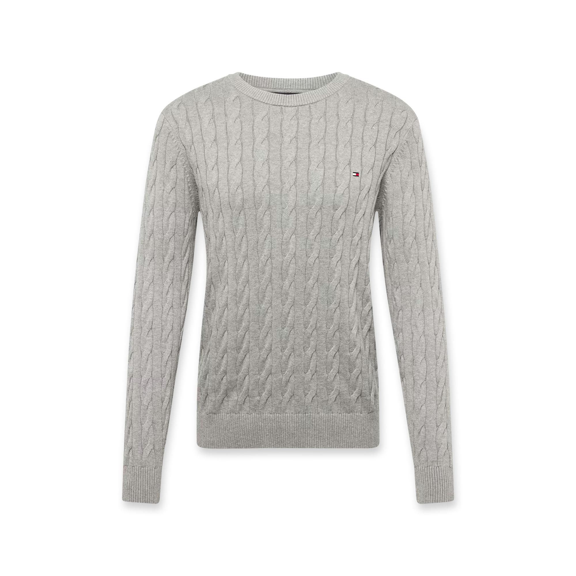 Ce pull à col rond en maille fine avec un motif tressé et des rayures est une déclaration simple avec un caractère classique. C'est un ajout confortable à toute garde-robe, avec un motif en maille torsadée complexe qui offre un aspect texturé.