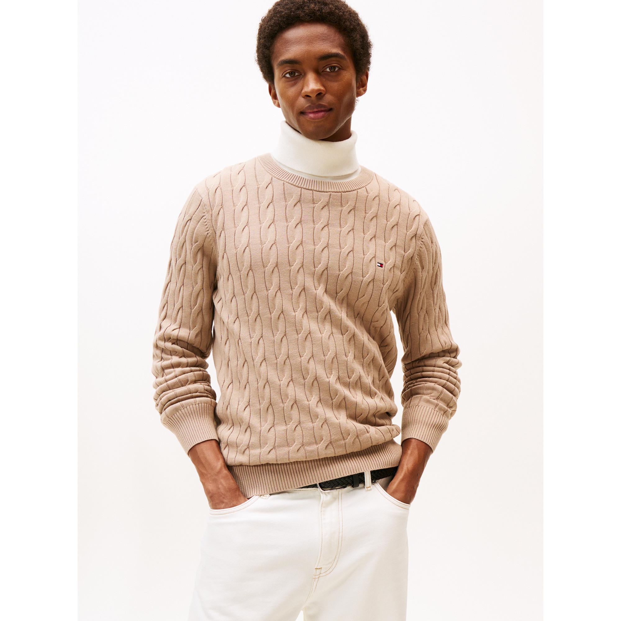 Ce pull à col rond en maille fine avec un motif tressé et des rayures est une déclaration simple avec un caractère classique. C'est un ajout confortable à toute garde-robe, avec un motif en maille torsadée complexe qui offre un aspect texturé.