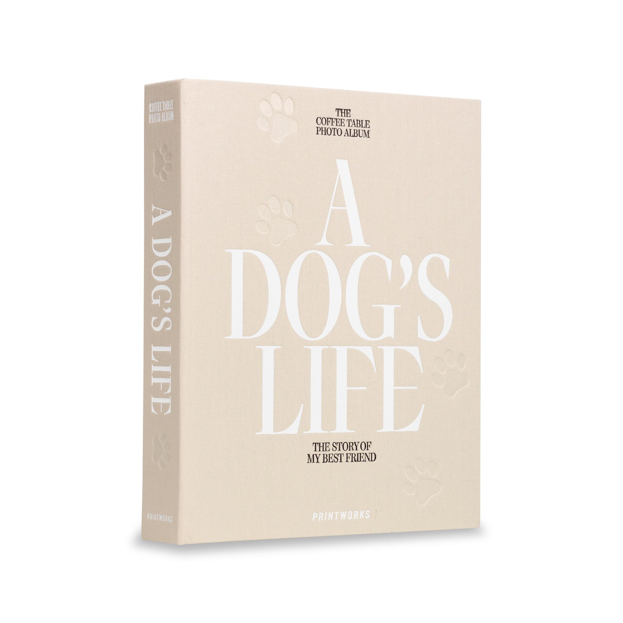 « A Dog's Life » a une belle couverture en tissu beige avec un texte blanc. À l'intérieur, vous trouverez 30 pages de papier photo blanc de haute qualité, sur lesquelles vous pourrez facilement fixer vos photos à l'aide de nos autocollants ou de nos coins photo, disponibles séparément. Chaque page peut accueillir deux photos au format 10x15 cm, avec suffisamment d'espace pour des notes personnelles. Si vous avez besoin de pages supplémentaires, vous pouvez commander du papier photo supplémentaire (grand format). Veuillez toutefois noter que l'album peut contenir au maximum 40 pages. Le papier photo a une taille de 28x21 cm.