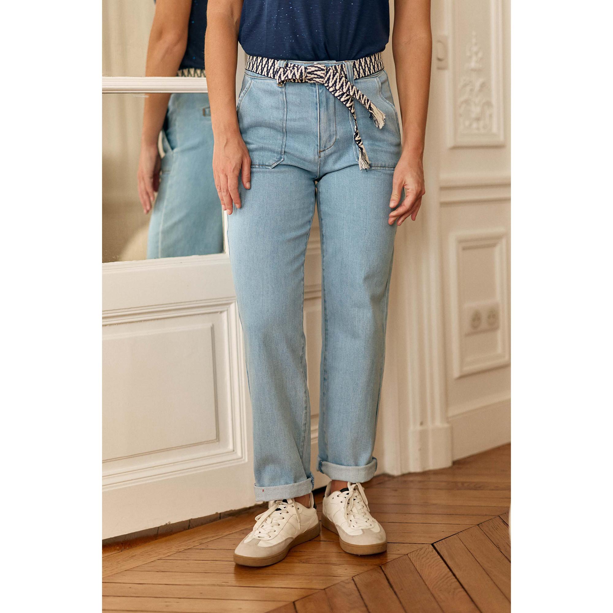 Ce jean droit est un ajout intemporel et polyvalent à toute garde-robe. Le denim délavé clair offre un look décontracté mais chic, adapté à diverses occasions. Conçu avec une coupe décontractée et ample, ce jean longueur cheville présente une taille normale pour un port confortable.