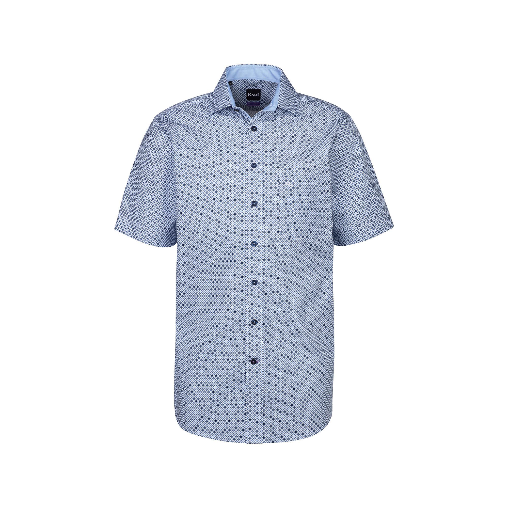 La chemise à manches courtes Pisa New Kent à motif bleu est fabriquée à partir de 100% de coton raffiné et facile d'entretien. Grâce à son tissu spécial, la chemise Regular Fit à coupe droite reste infroissable très longtemps et est particulièrement agréable à porter sur la peau. Le fin motif géométrique bleu met en valeur à la fois le moderne et le classique. L'élégante chemise bleue à manches courtes Pisa New Kent complète avec goût les tenues masculines modernes.