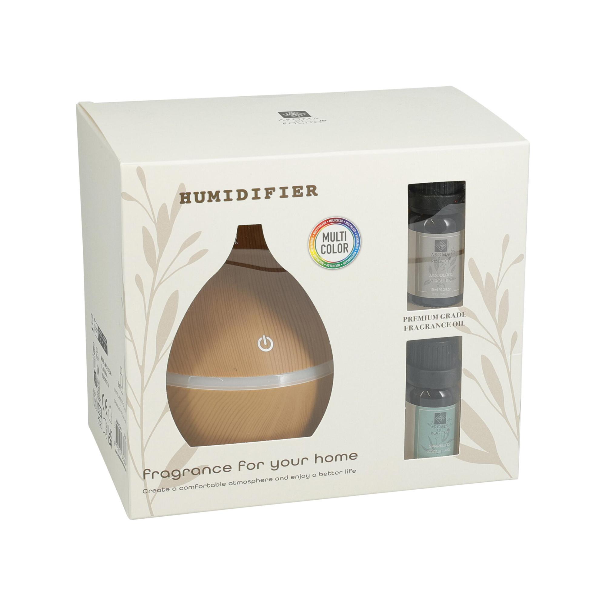 Diffuseur avec lumière LED multicolore et connexion USB. Comprend deux huiles essentielles aux senteurs hivernales – apporte humidité agréable et ambiance chaleureuse.
