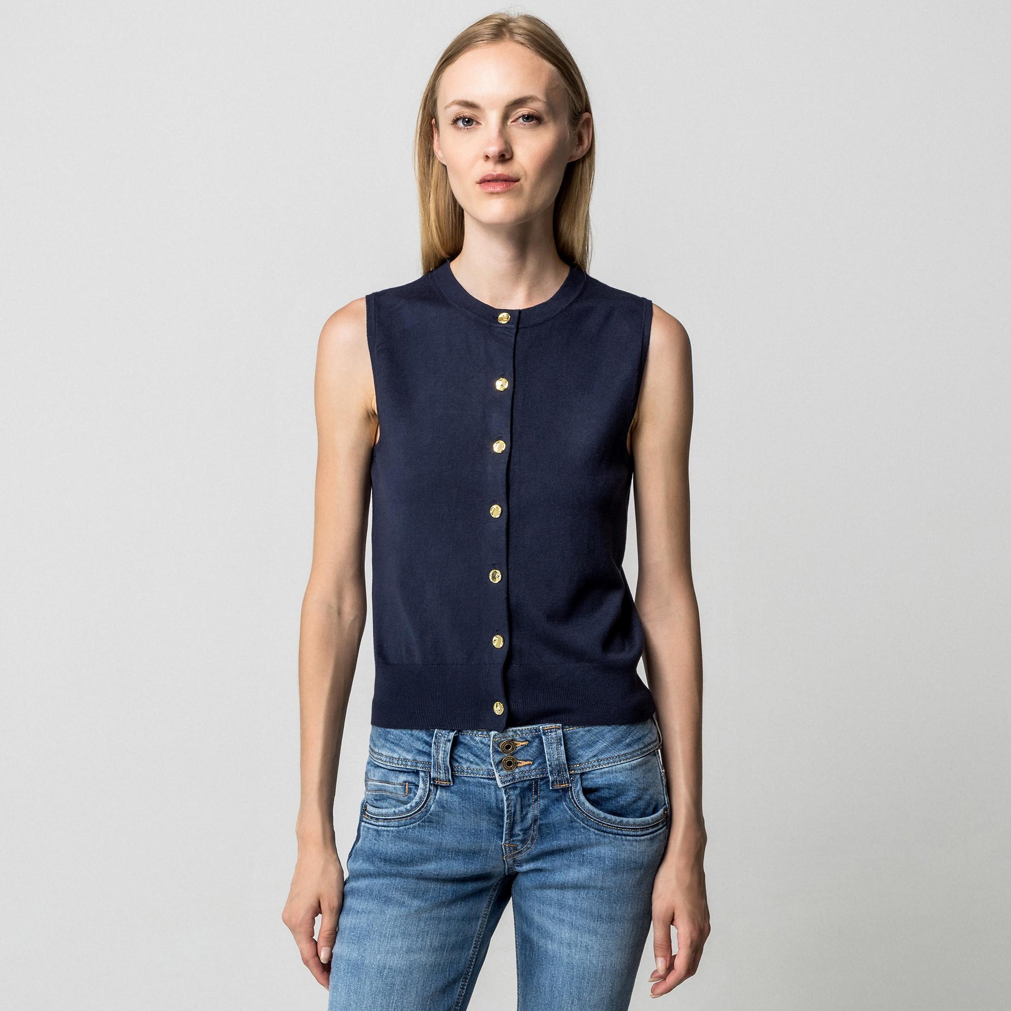 Ce cardigan sans manches en maille fine douce avec des boutons remarquables est un basique polyvalent qui complète parfaitement les tenues décontractées estivales ainsi que les looks superposés tendance. Le gilet est fabriqué dans un mélange de viscose agréablement doux.