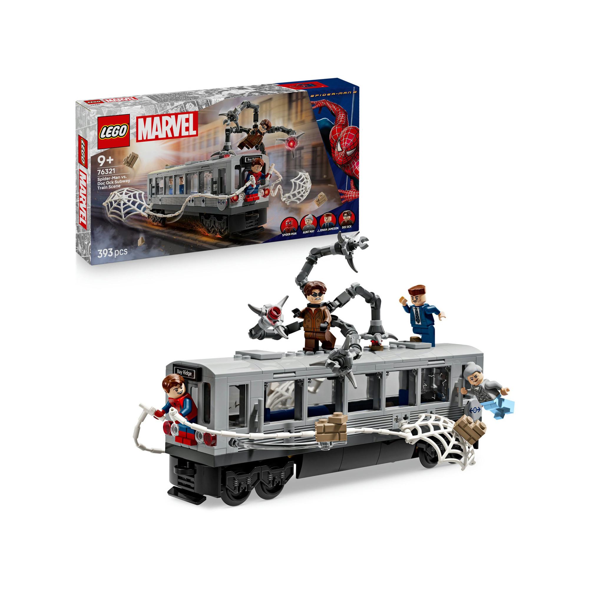 Le modèle s’inspire d’une scène mythique du film Spider-Man 2 de Marvel Studios. Il inclut 4 minifigurines : J. Jonah Jameson, Tante May, Spider-Man et Dr Octopus. Spider-Man possède deux têtes interchangeables (masquée ou non) et une grande toile qui se fixe sur le train. Dr Octopus a 4 tentacules articulés, dont 2 avec des « rayons laser » et 2 avec des pinces qui se fixent sur le train. Le toit se soulève pour accéder à l’intérieur et installer une minifigurine de passager. Pour ajouter une dimension numérique, l’application LEGO Builder ludique et intuitive permet aux constructeurs de zoomer, faire pivoter le modèle en 3D et suivre leur progression. Contient 393 pièces.