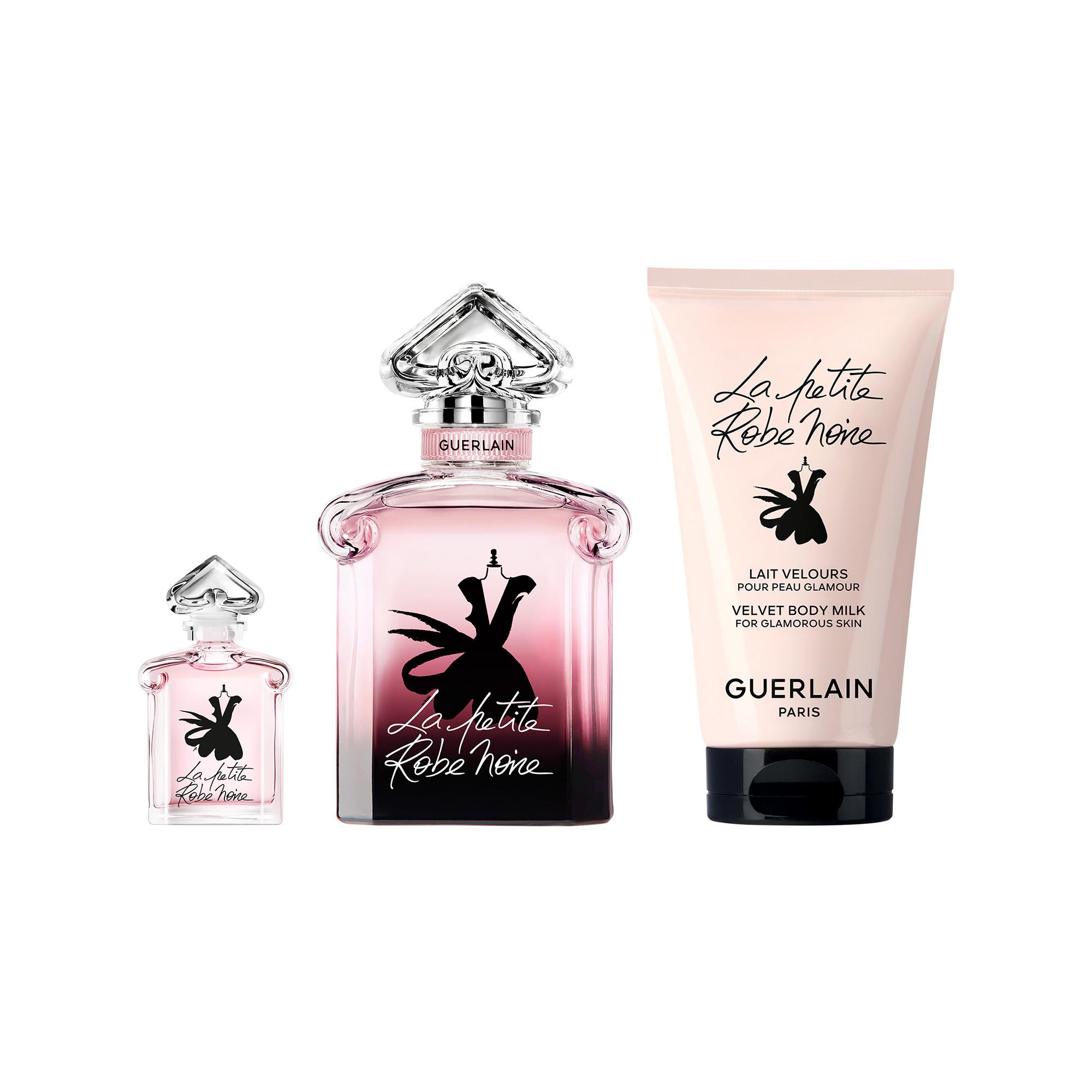 - Un Lait pour le Corps La Petite Robe Noire (75 mL), une texture fluide et délicieusement veloutée qui habille la peau d’un voile satiné délicatement parfumé”.