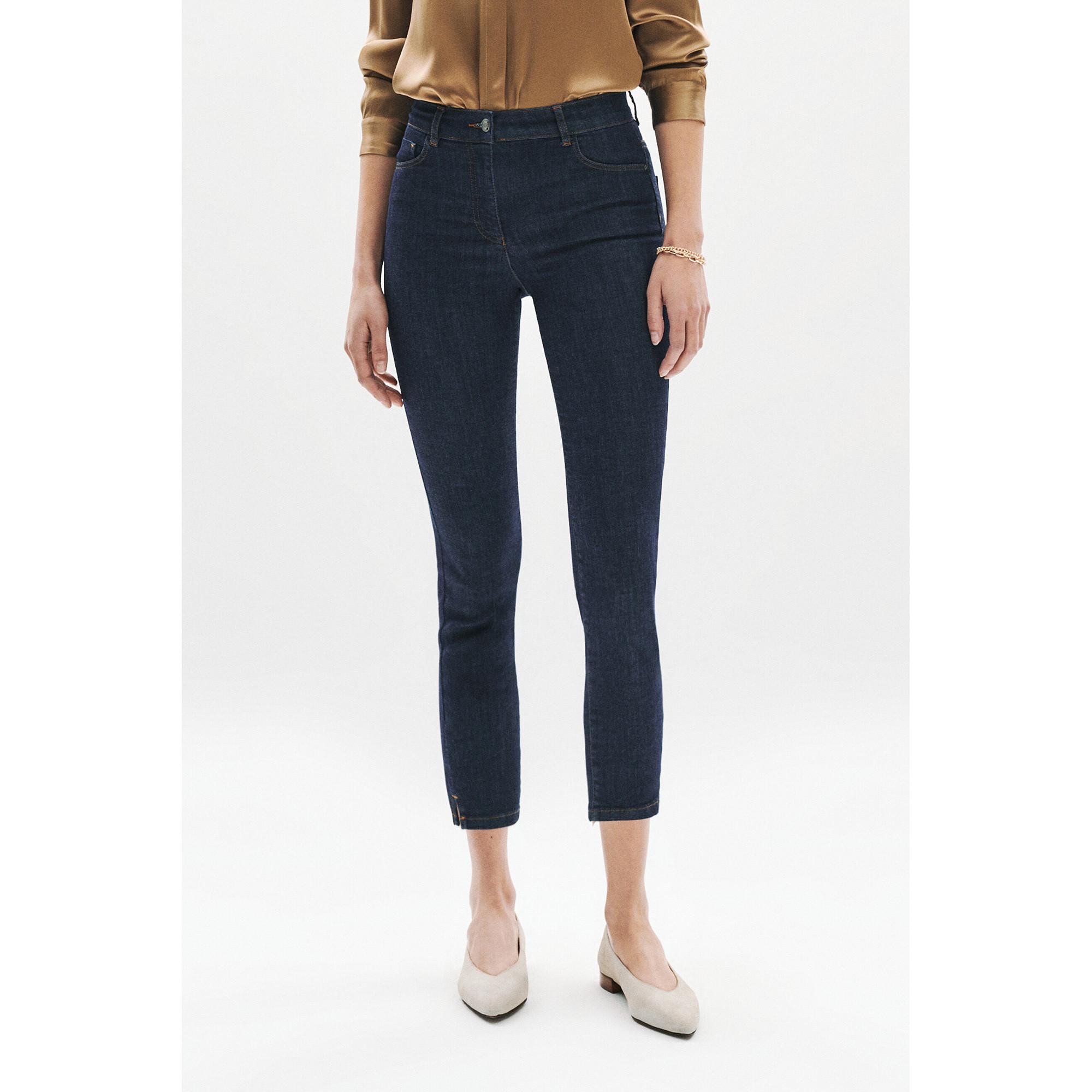 Ce jean cropped est un ajout moderne et polyvalent à toute garde-robe. Le design présente une fermeture classique à bouton et à glissière, assurant un ajustement sûr et confortable. Le style à cinq poches offre un rangement pratique pour les petits essentiels.