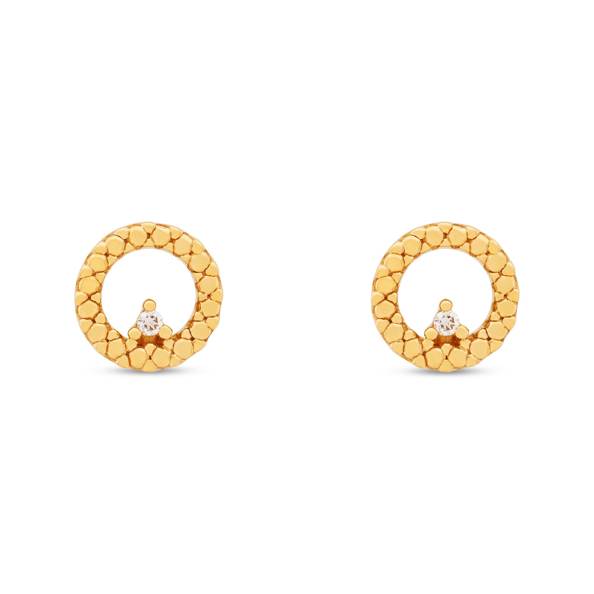 Ces clous d’oreilles de L’Atelier Gold 18 Karat by Manor sont fabriqués avec un design circulaire et deux diamants. Les clous élégants ont un aspect doux et harmonieux et se fixent en toute sécurité par le fermoir papillon classique.