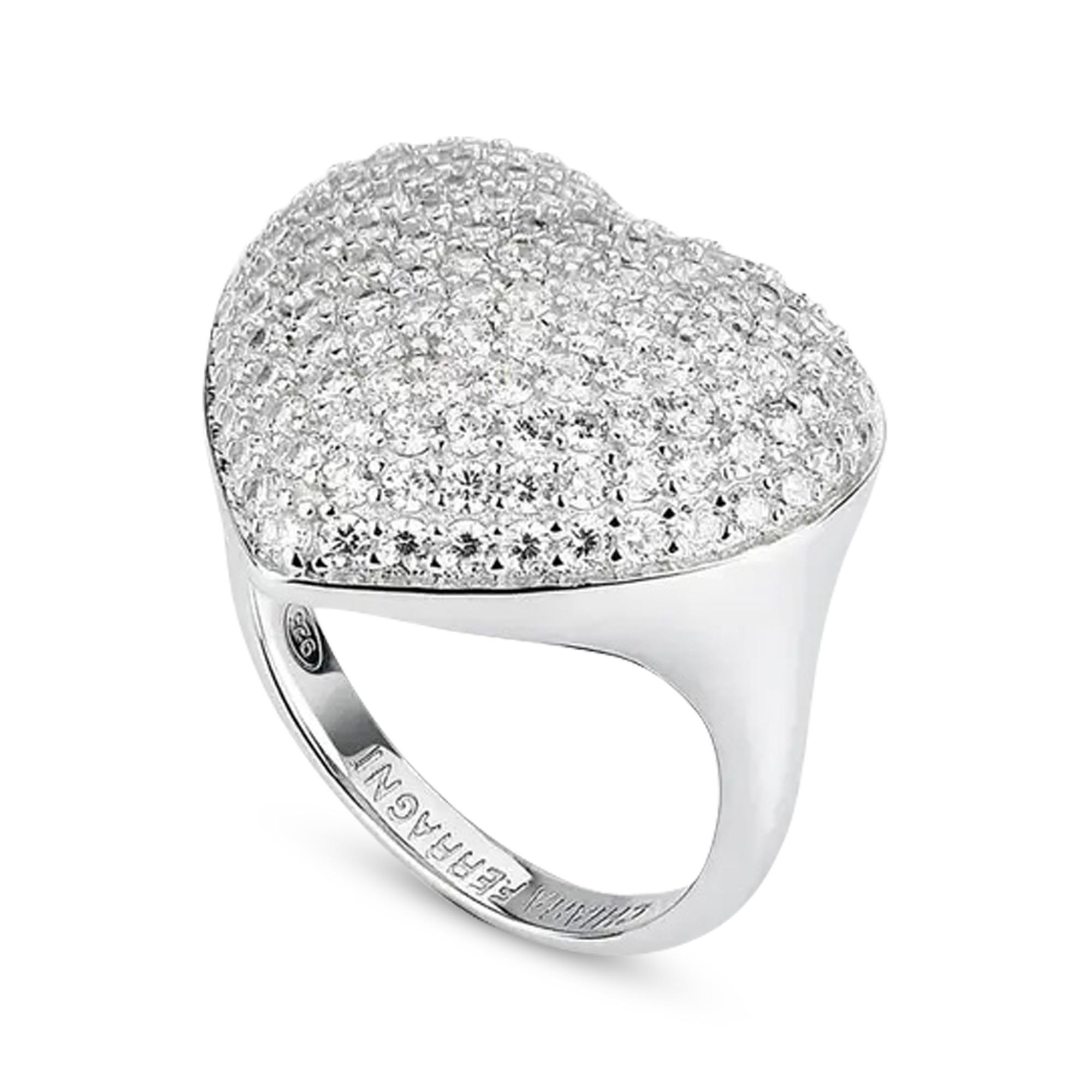 La bague en pavé de la Silver Collection de Chiara Ferragni allie un charme féminin à une élégance étincelante – fabriquée en argent 925 et sertie de zirconiums blancs en forme de cœur. Avec sa surface brillante,