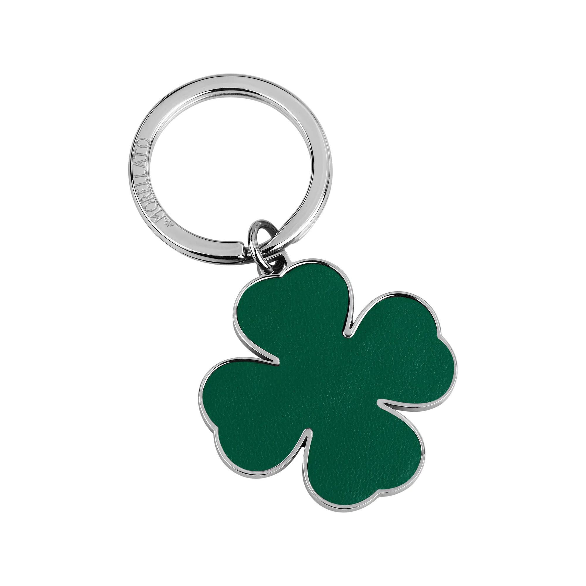 Le porte-clés Morellato Leather pour femmes allie l’acier inoxydable brillant à un aspect cuir écologique argenté de haute qualité et à un charmant trèfle à quatre feuilles en tant que symbole de chance.