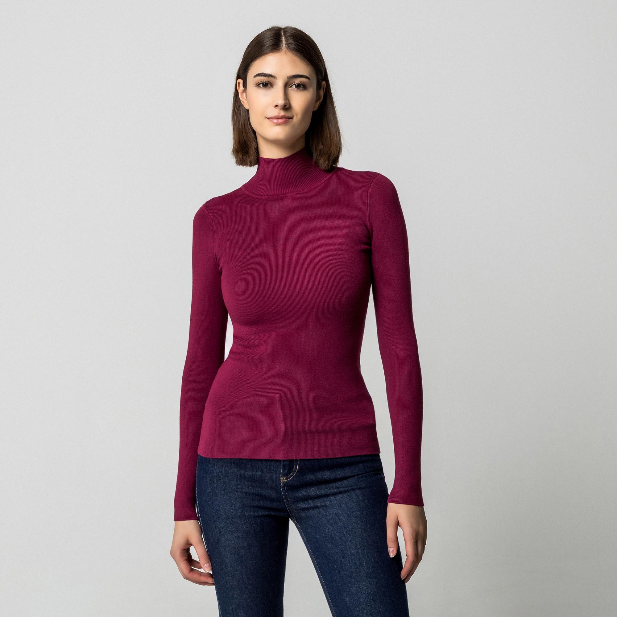 Ce pull en maille côtelée à coupe ajustée est fabriqué dans un mélange de viscose agréablement léger. Le pull de couleur unie a un col montant et des manches longues.
