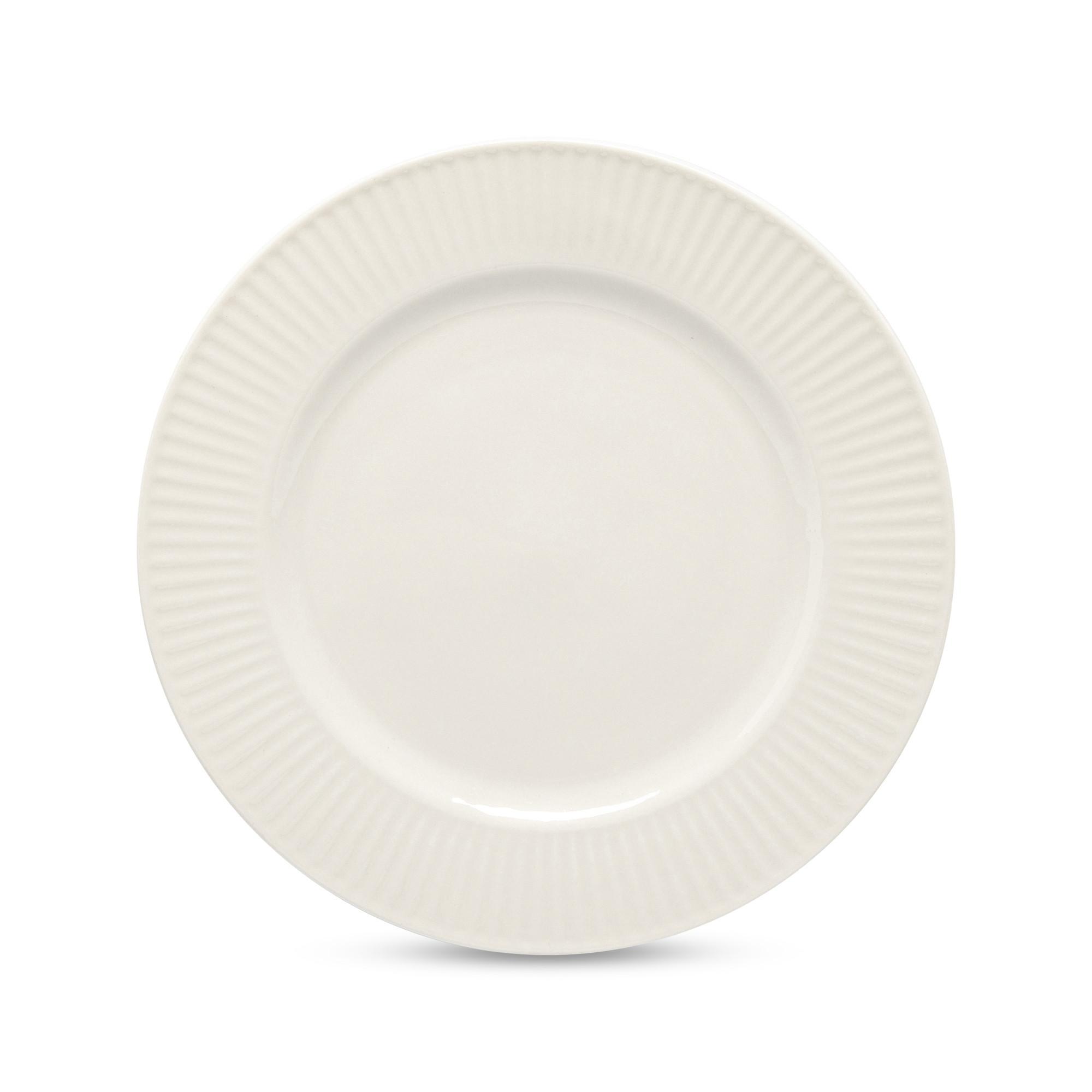 Cette assiette à dessert de la série de vaisselle Swing de Manor est fabriquée en porcelaine avec une texture rainurée et se distingue par un design caractéristique et contemporain.