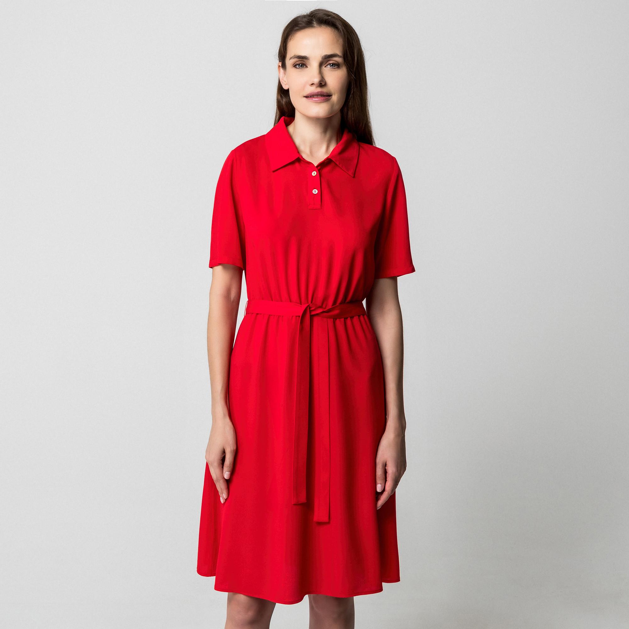 Cette robe polo midi est un basique élégant pour les tenues décontractées féminines. La robe a des manches courtes et est cintrée.
