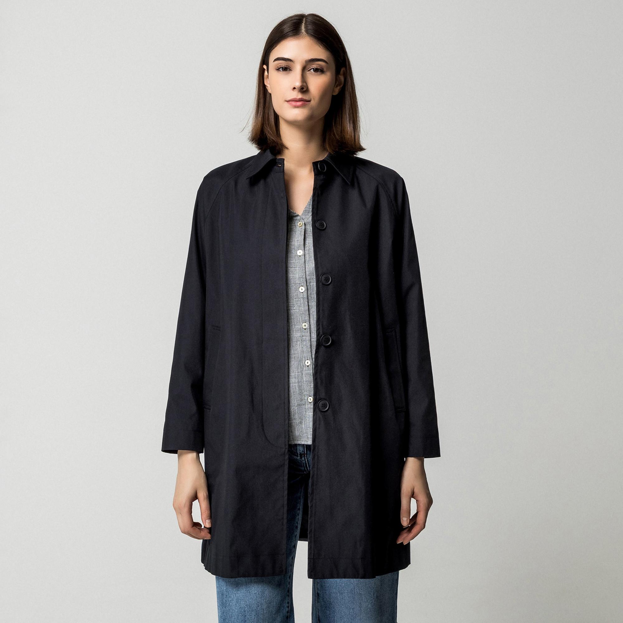 Ce manteau de couleur unie, avec un ajustement décontracté et une patte de boutonnage cachée, peut être combiné de multiples manières. Avec un chic contemporain, il fait honneur au trench-coat classique. Le manteau est doté d’une doublure légère et possède des poches cavalières obliques.
