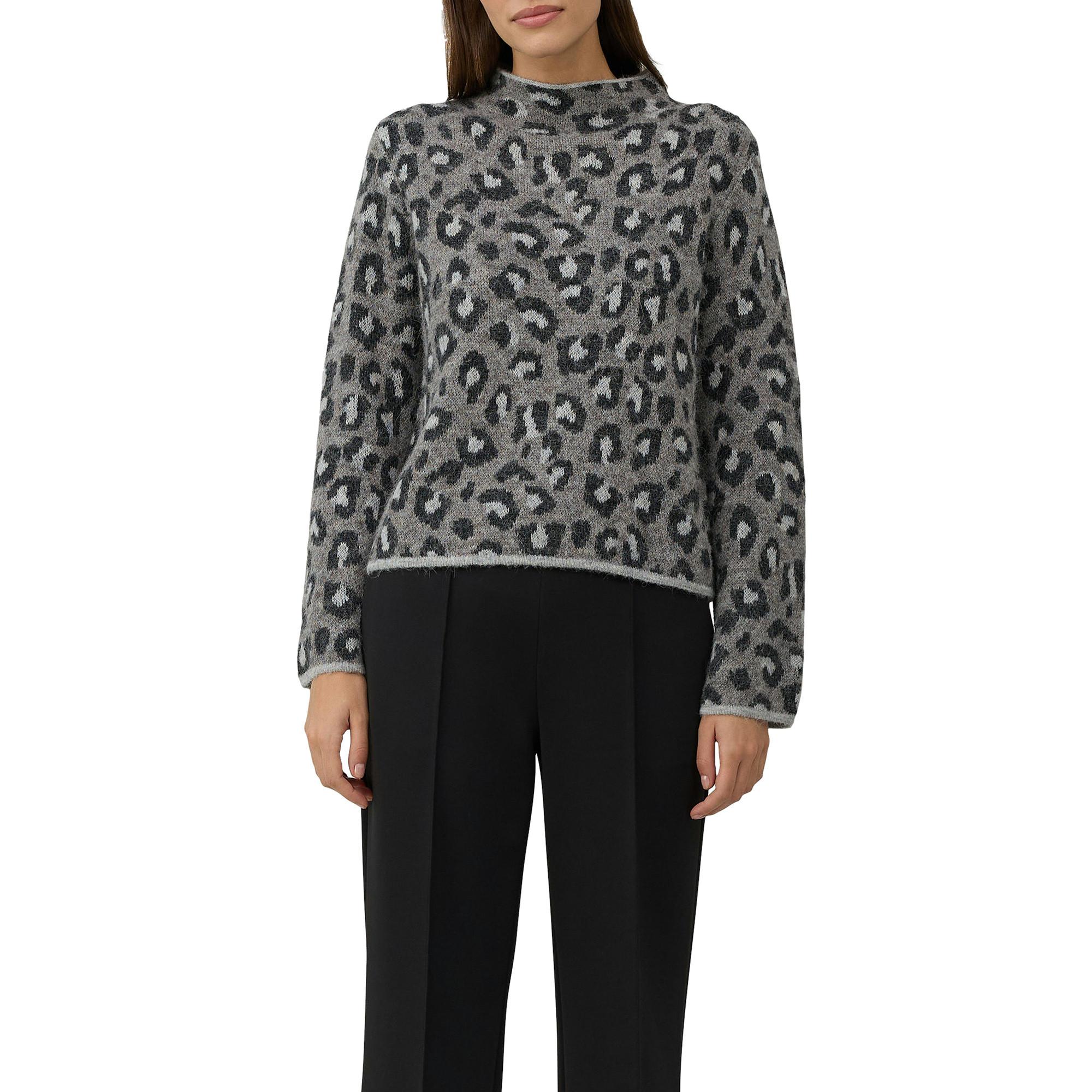 Ce pull tricoté présente un col montant et une coupe régulière. Le motif léopard crée un effet tendance et attire le regard. La matière agréable convient parfaitement aux journées fraîches.