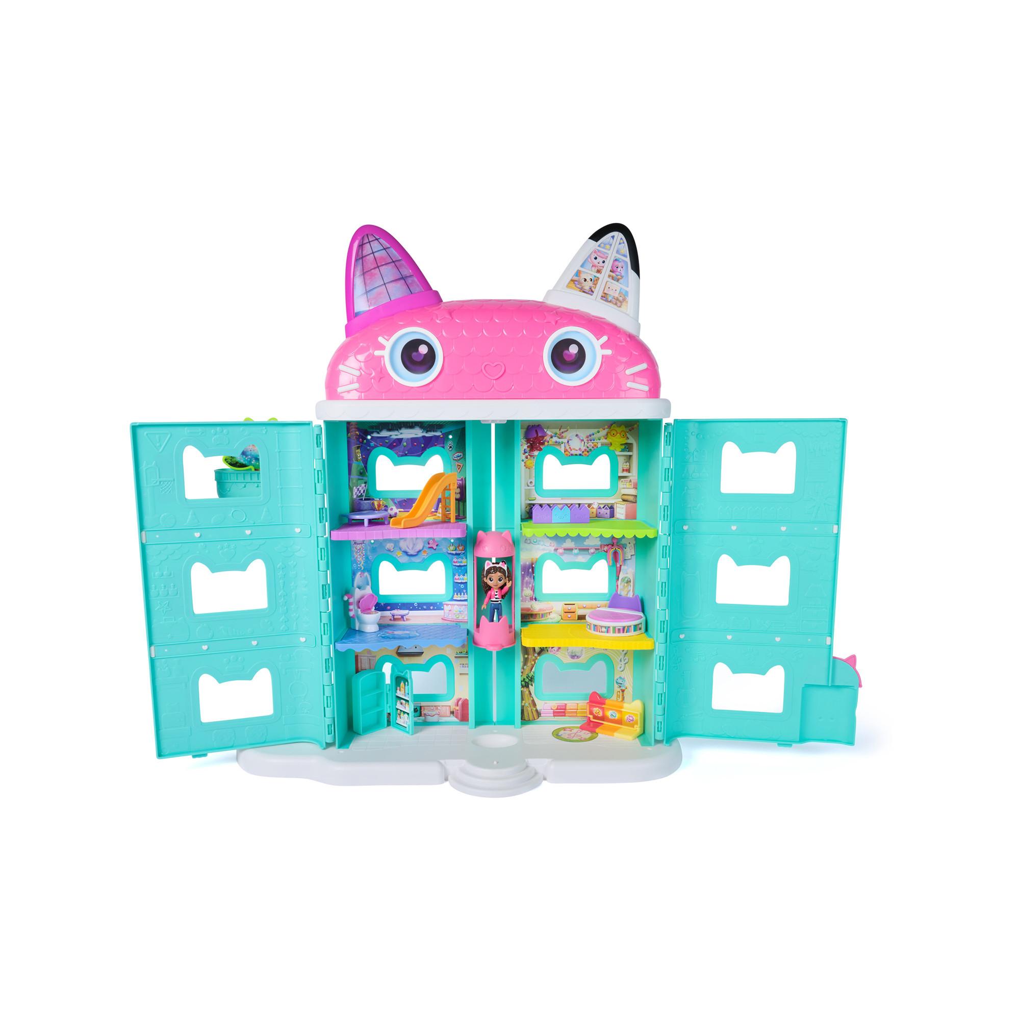 L'univers magique de Gabby et de ses adorables amis les chats. Retrouvez la réplique géante de la Maison Magique de Gabby avec 1 figurine de Gabby, 1 figurine de chat, 11 éléments de jeu dont 8 meubles, 2 boîtes surprises et des accessoires de décor pour revivre les scènes du film. Une véritable maison de poupée for-miaou-dable de Gabby. Prenez l'ascenseur avec Gabby pour découvrir toutes les pièces de sa Maison Magique et rencontrer tous ses amis.Univers de plus de 60 cm de haut compatible avec les univers, balcons et les figurines de l'univers Gabby et la Maison Magique - Le Film (vendus séparément). Une application gratuite à télécharger grâce au QR code inclus pour poursuivre l'expérience de jeu. A partir de 3 ans.