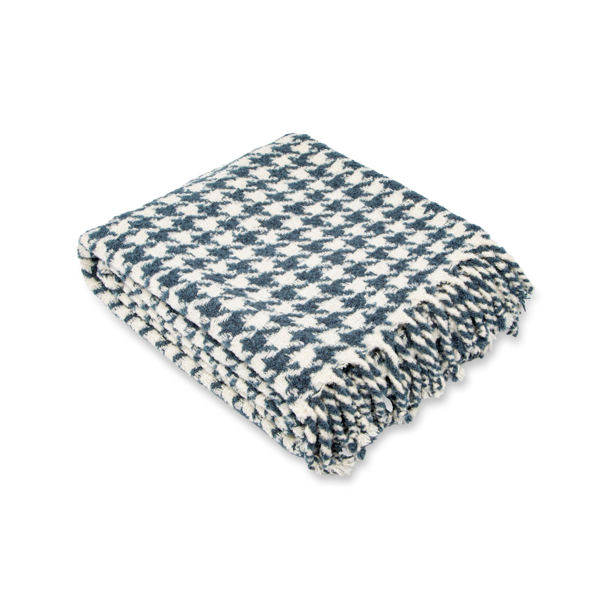 Ce plaid de Manor avec un motif pied-de-poule et de larges franges torsadées est un accessoire de maison contemporain avec un facteur de bien-être élevé et un chic classique.
