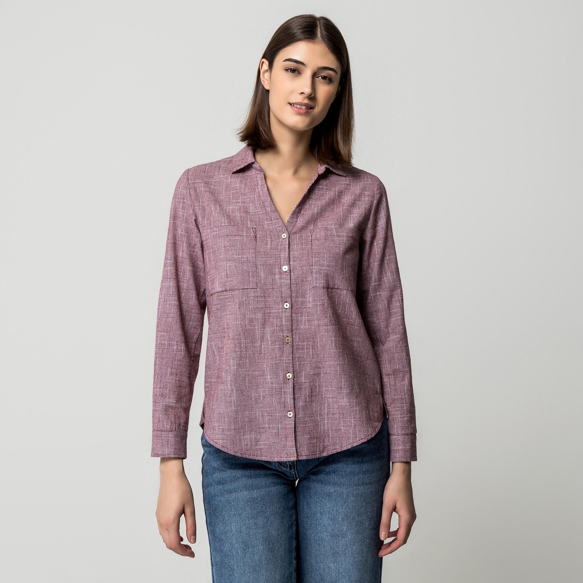 Ce chemisier en pur coton est un haut féminin avec une coupe décontractée et des détails classiques qui peut être facilement combiné avec différents styles. Il est doté d’un col et d’une encolure en V, de boutons, de manches avec des barres et est fendu.