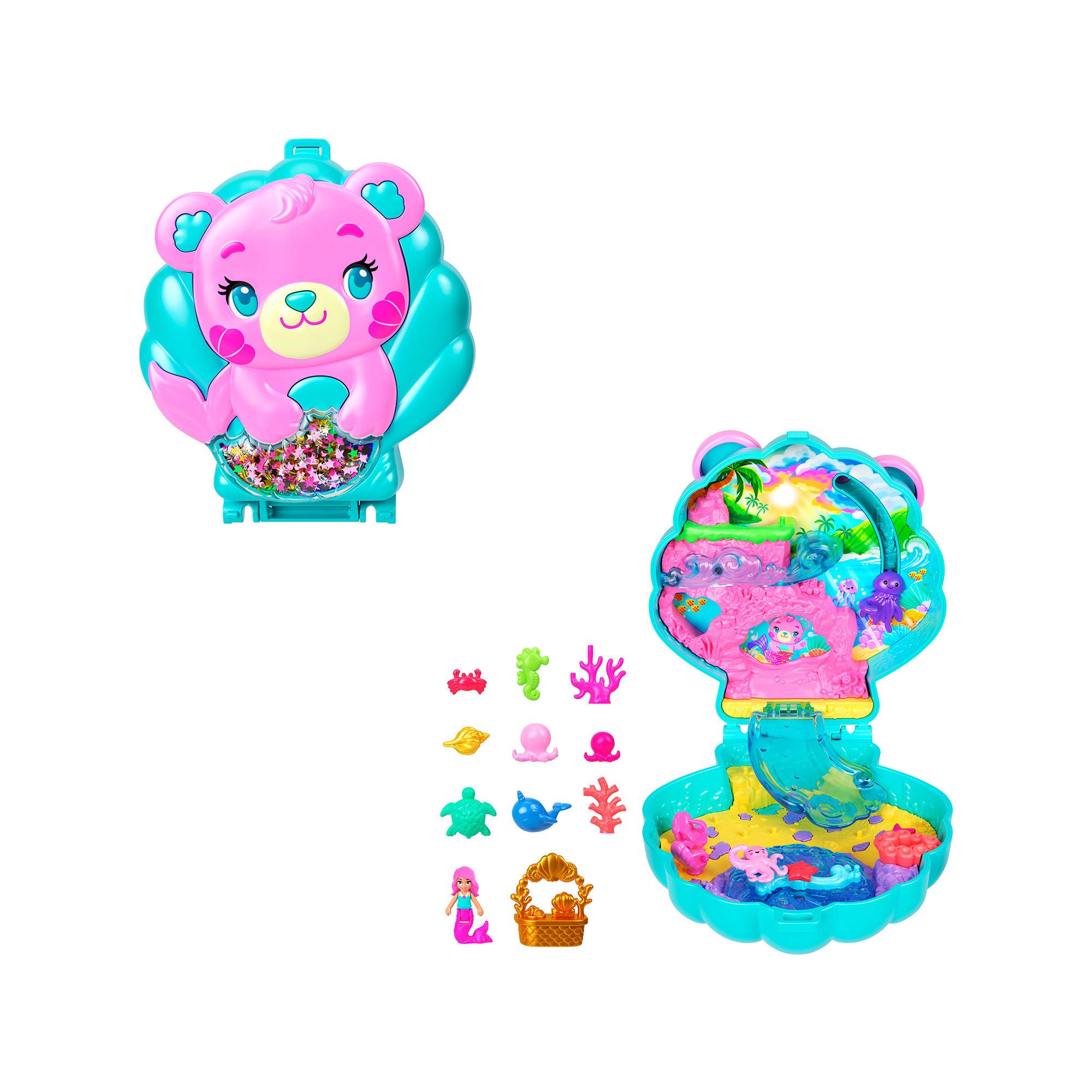 Ce charmant coffret Polly Pocket île scintillante ressemble à un coquillage de sirène et est équipé d'un drôle de shaker scintillant ! À l'intérieur, un monde sous-marin est à découvrir ! Avec la mini-poupée sirène et les 11 accessoires assortis, y compris les animaux, découvrez tous les plaisirs de la pataugeoire ! Découvrir le monde sous-marin sur une méduse ou dévaler le toboggan aquatique ! La grotte secrète invite à s'attarder avant de faire un tour sur un narval. Il y a beaucoup à faire ! Après avoir joué, les enfants peuvent facilement plier le set de jeu et l'emporter avec eux ! Idéal pour les enfants à partir de quatre ans, en particulier pour ceux qui aiment les plages et les sirènes. Tous les articles sont vendus séparément. Sous réserve de variations de couleur et de conception.