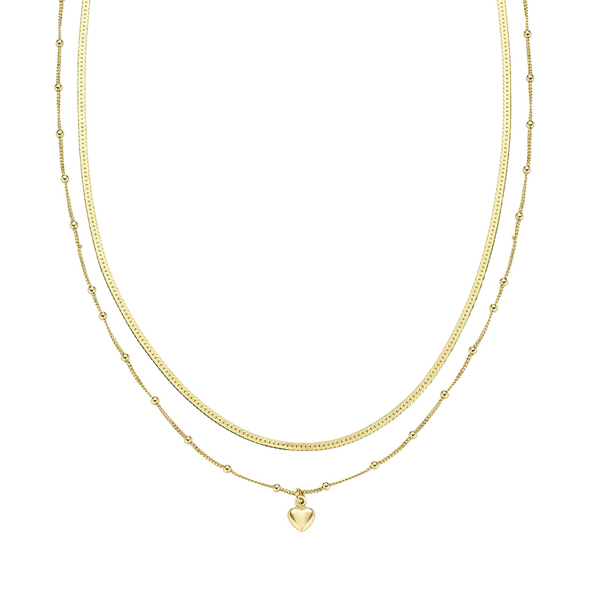 Cette chaîne plaqué or en argent 925 combine deux types de chaînes raffinés – une élégante chaîne serpent et une chaîne gourmette avec de petites boules – et est orné d’un délicat pendentif en forme de cœur (de 5 mm).