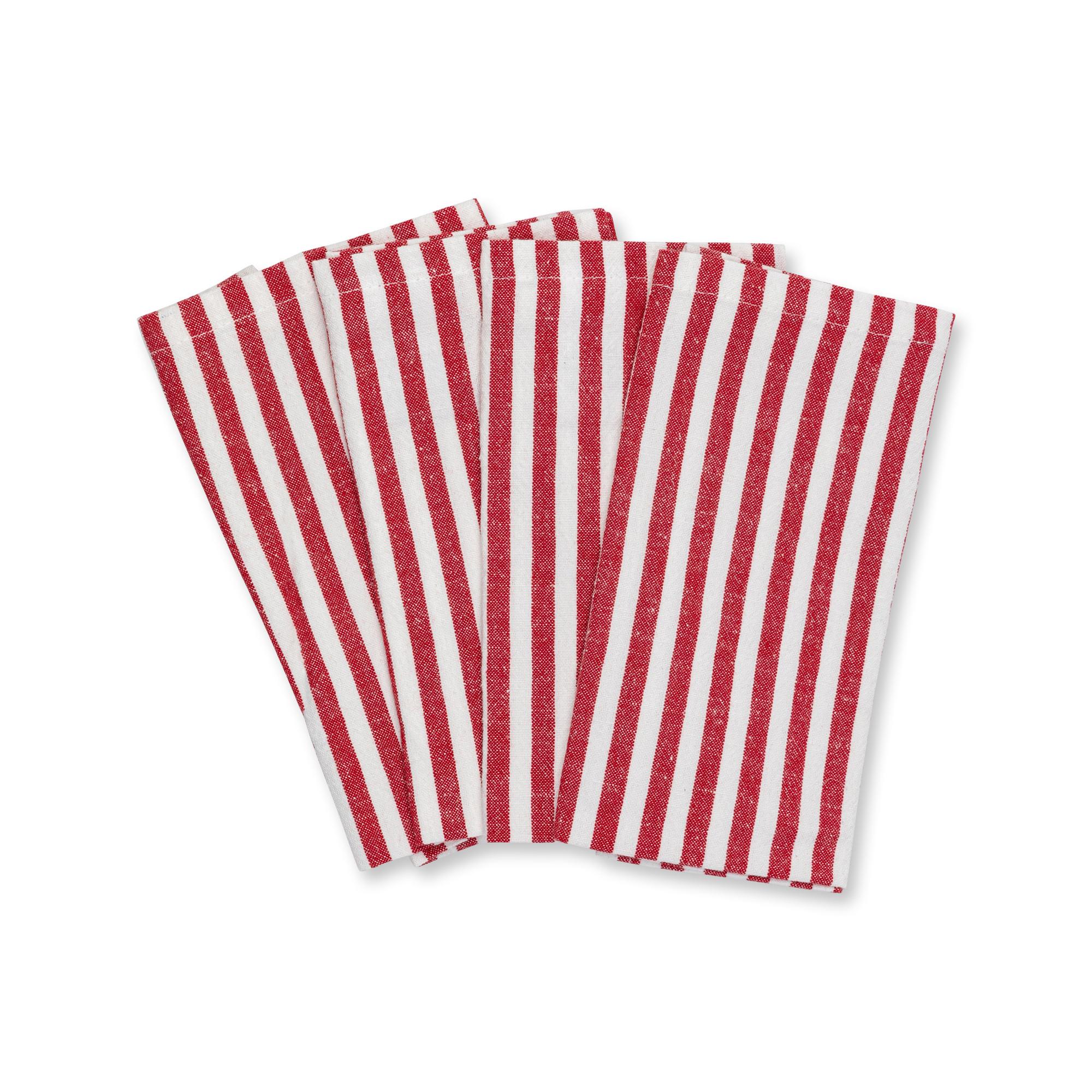 Cet ensemble de 4 serviettes en tissu de Manor est fabriqué dans un tissu en coton et lin, avec un design à rayures rafraîchissant – pour une table de fête avec un aspect naturel.
